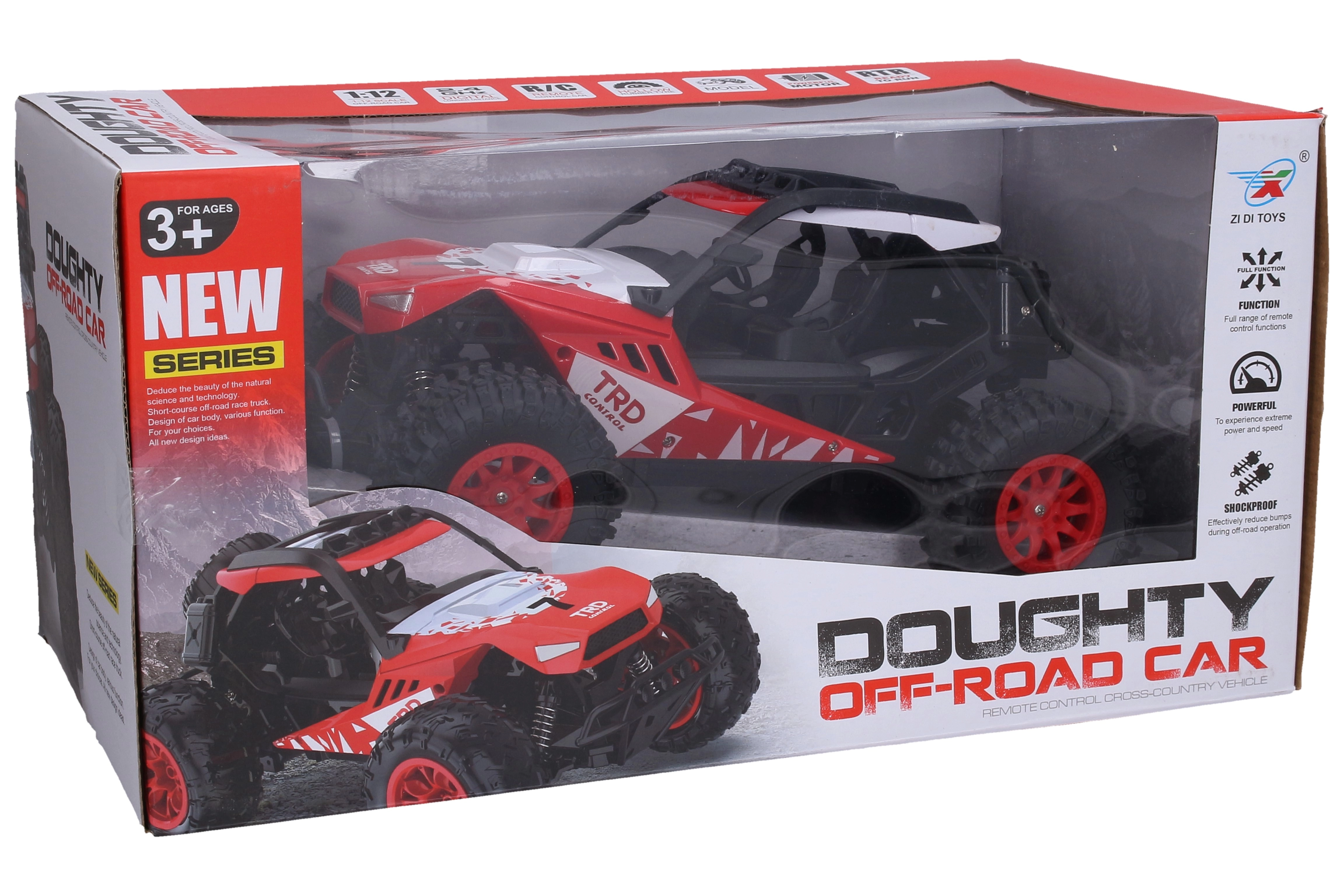 Scopri il divertimento con la veloce e agile RC buggy Doughty lunga 29 cm. Offre controllo affidabile sulla frequenza 2,4 GHz, radiocomando a pistola per una guida precisa e pacchetto batteria ricaricabile da 3,7 V incluso. Ideale per l’uso in casa e all’aperto.