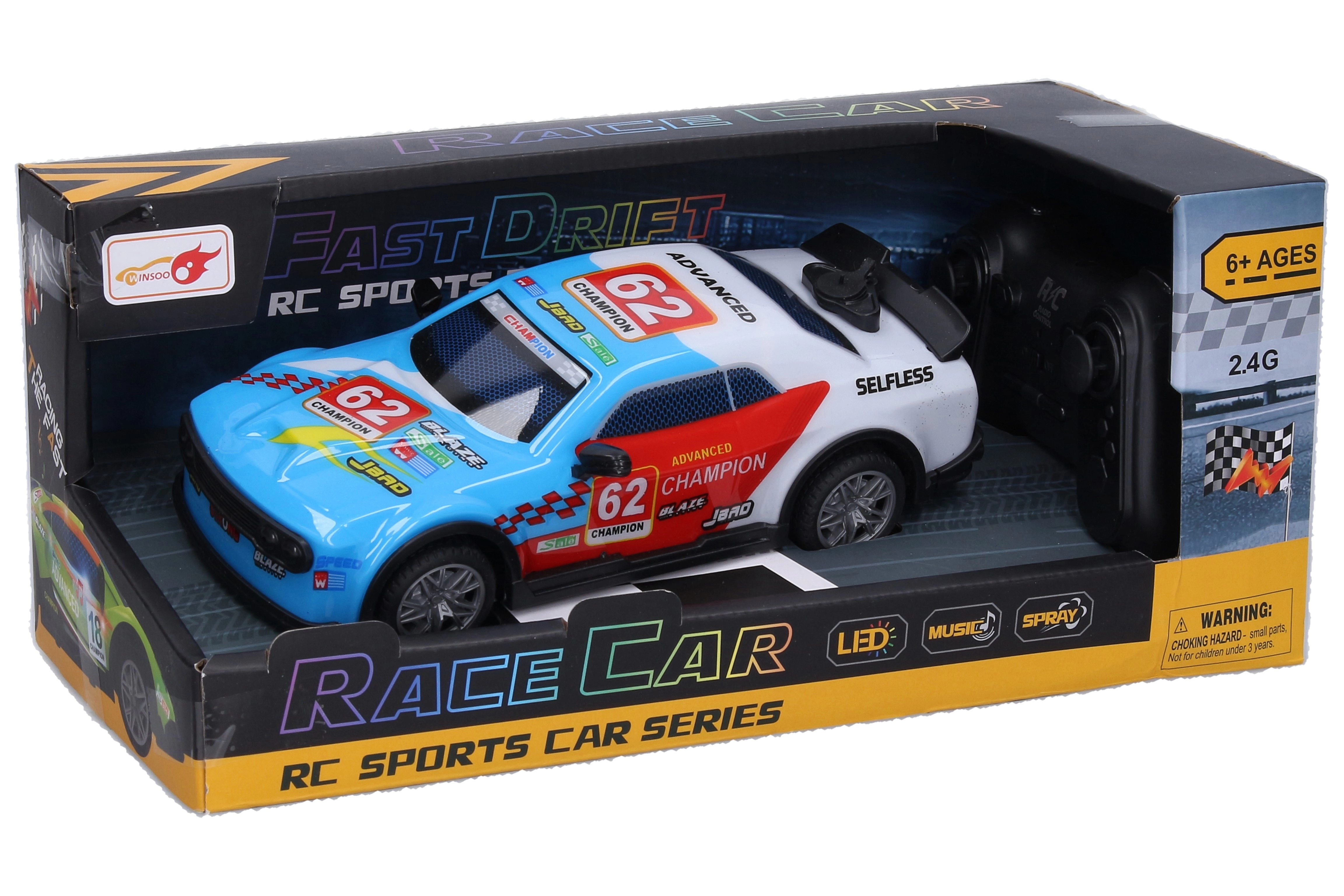 L’auto RC Champion combina un design accattivante con effetti divertenti che danno vita a ogni corsa. Grazie agli effetti luminosi e di fumo, il veicolo risulta dinamico e realistico. Il radiocomando permette di attivare facilmente il fumo e gli effetti sonori, rendendo ogni gara ancora più intensa.