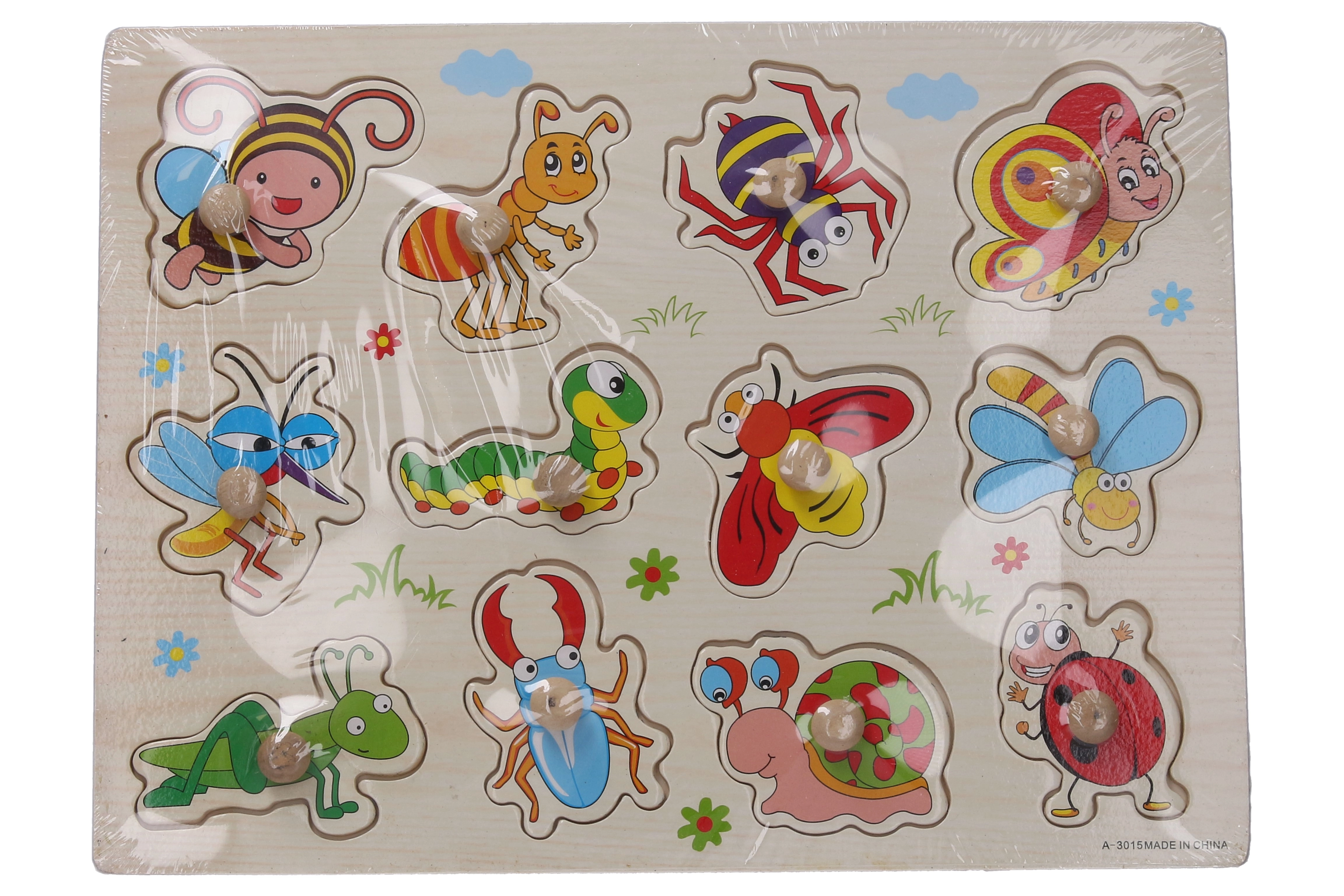 Scoprite un gioco divertente ed educativo per i più piccoli: puzzle in legno a incastro con tema degli insetti delle dimensioni 30 × 22,5 × 1 cm. Aiuta a sviluppare la motricità fine, la logica e il riconoscimento di forme e animaletti.