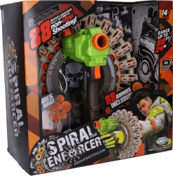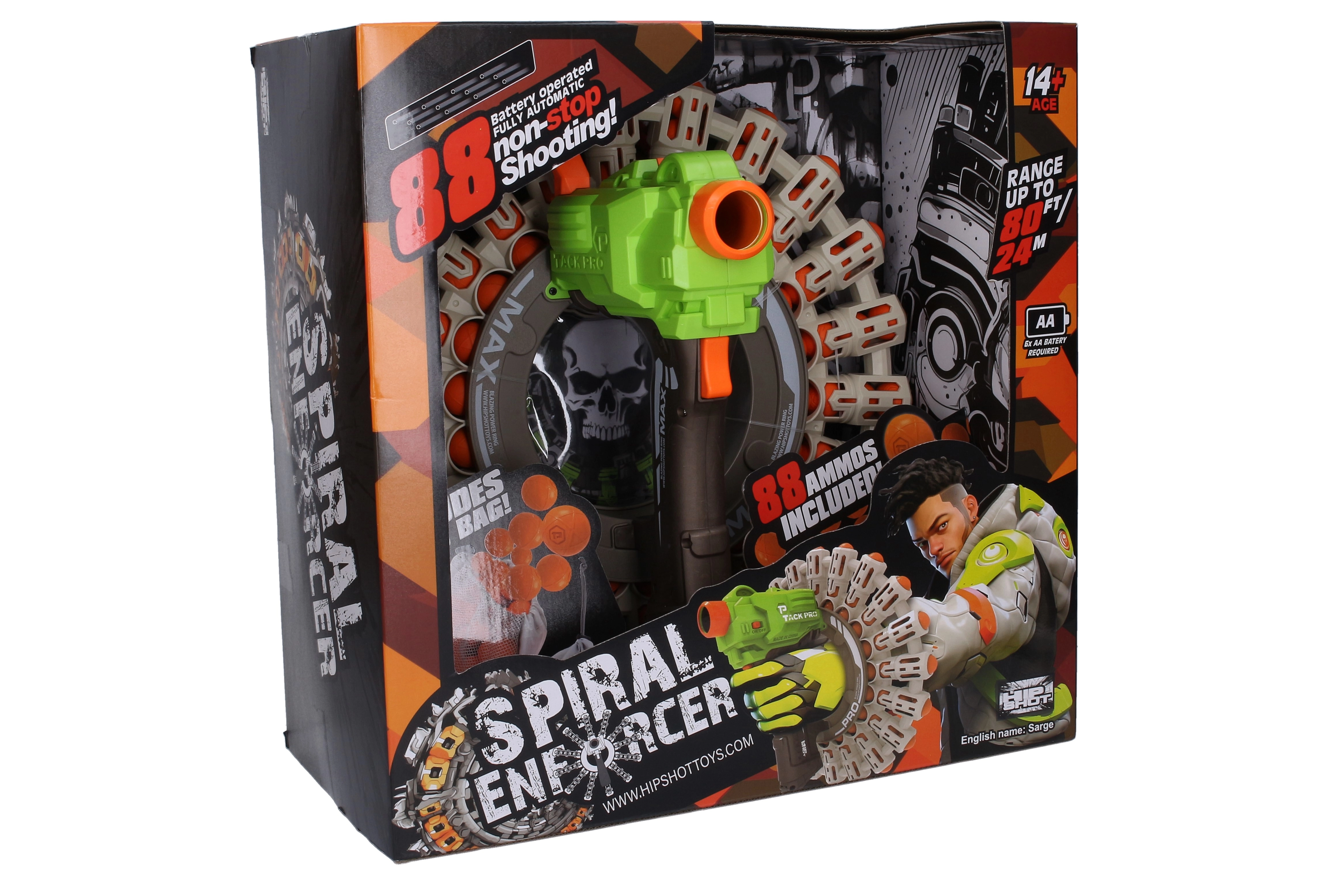La pistola Spiral Enforcer con palline garantisce un gioco dinamico con lunga portata e un’elevata capacità di munizioni. Grazie alla gittata fino a 24 metri potrai divertirti con azioni a distanza, sia in interni che all’aperto. Nella confezione sono inclusi 88 palline e un sacchetto porta-palline, così hai tutto a portata di mano e le pause di gioco sono ridotte al minimo.