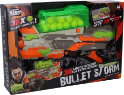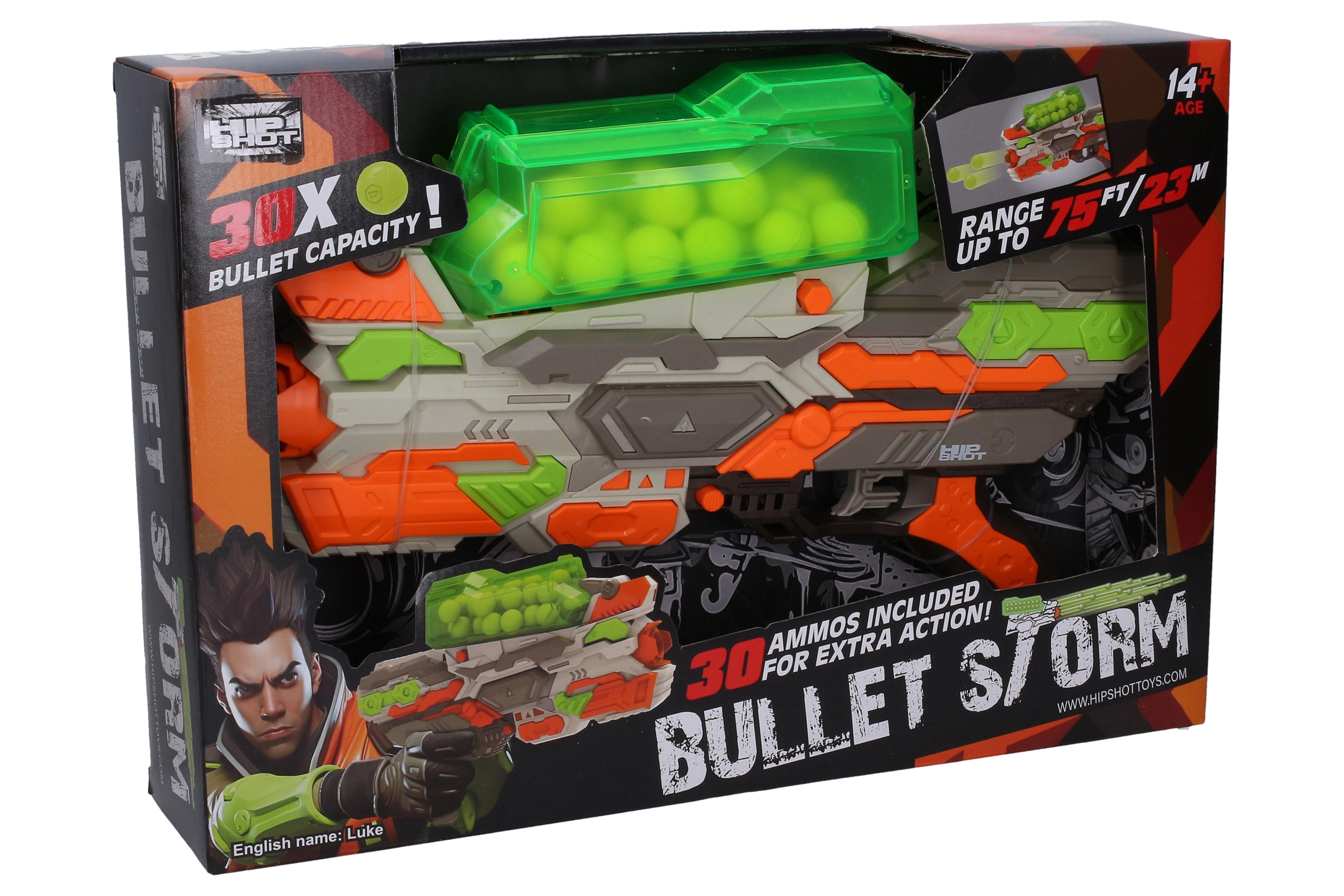 Preparati al divertimento d’azione con la pistola Bullet Storm, che combina sicurezza e prestazioni. Grazie alla gittata fino a 23 metri e alla scorta di 30 morbide palline in gommapiuma potrai goderti lunghe ore di gioco in casa e all’aperto. La struttura robusta e l’impugnatura confortevole garantiscono un controllo comodo e sicuro.
