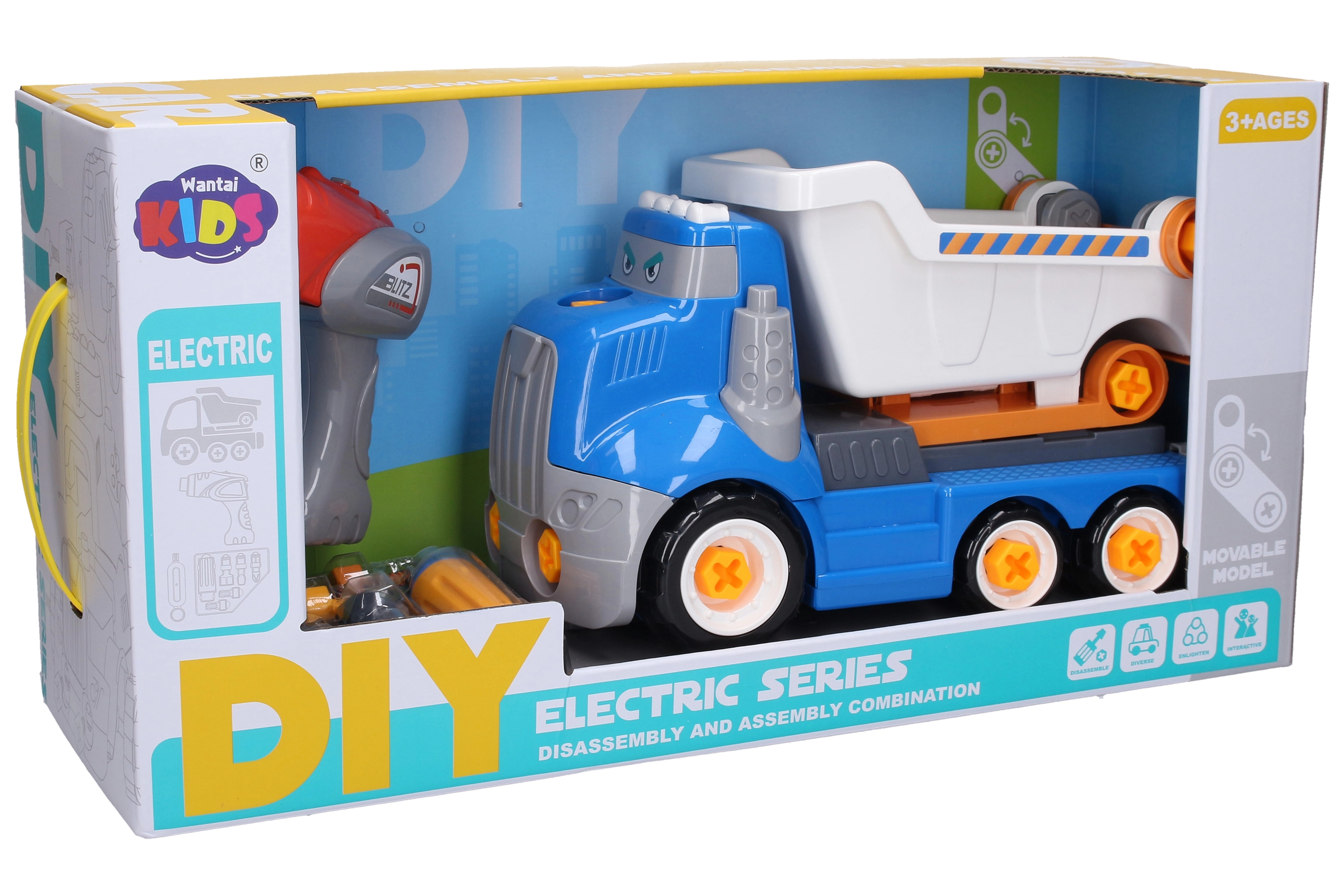Costruisci e guida il tuo veicolo da cantiere! Questo autocarro ribaltabile avvitabile lungo 28 cm arriva con un cacciavite elettrico e un set di attrezzi, così i bambini possono smontare e rimontare il veicolo. L'unità elettrica rimovibile può essere inserita direttamente nel camion per una semplice trazione elettrica. Un gioco perfetto per lo sviluppo della motricità fine, della pazienza e del pensiero tecnico.