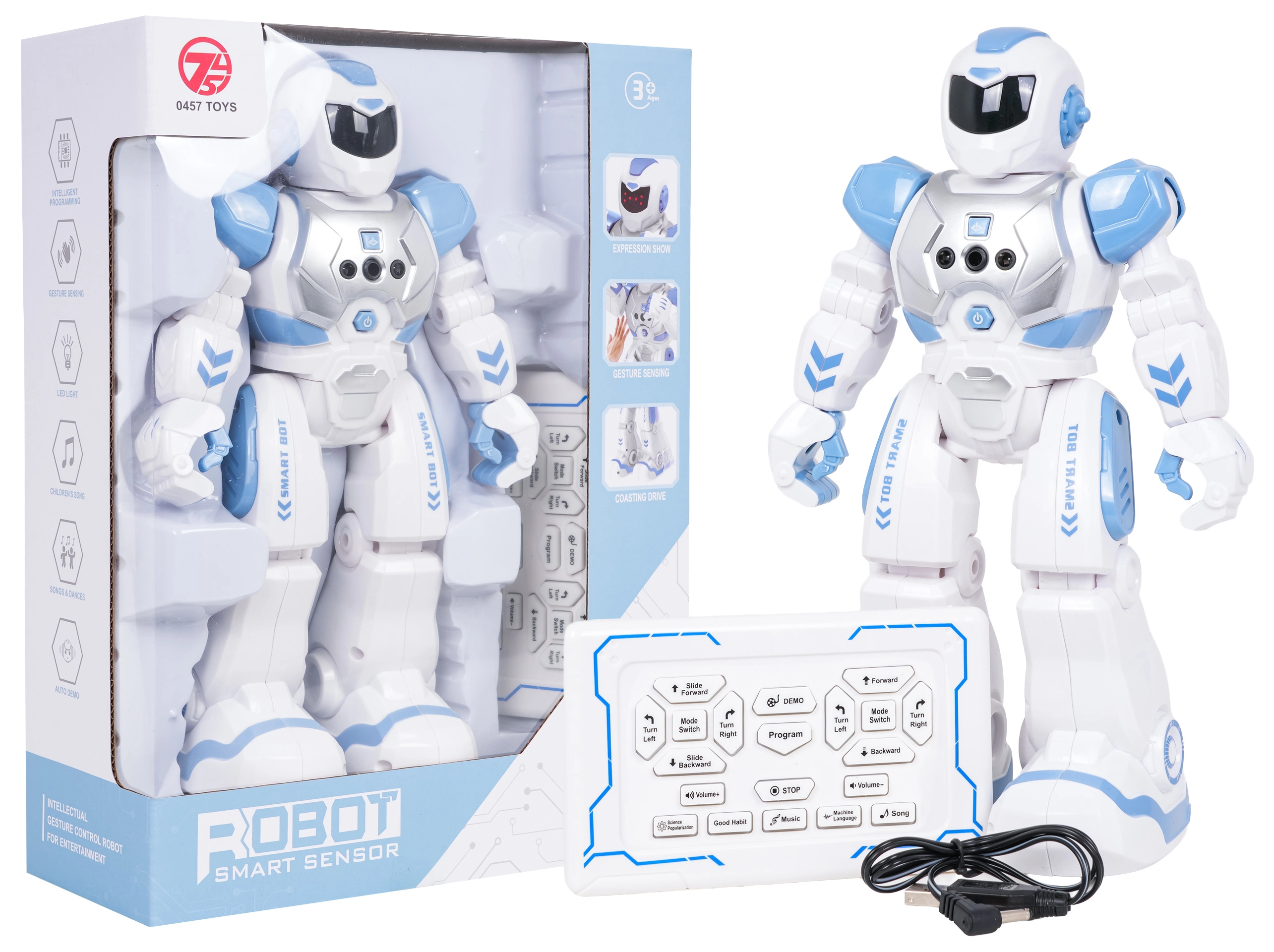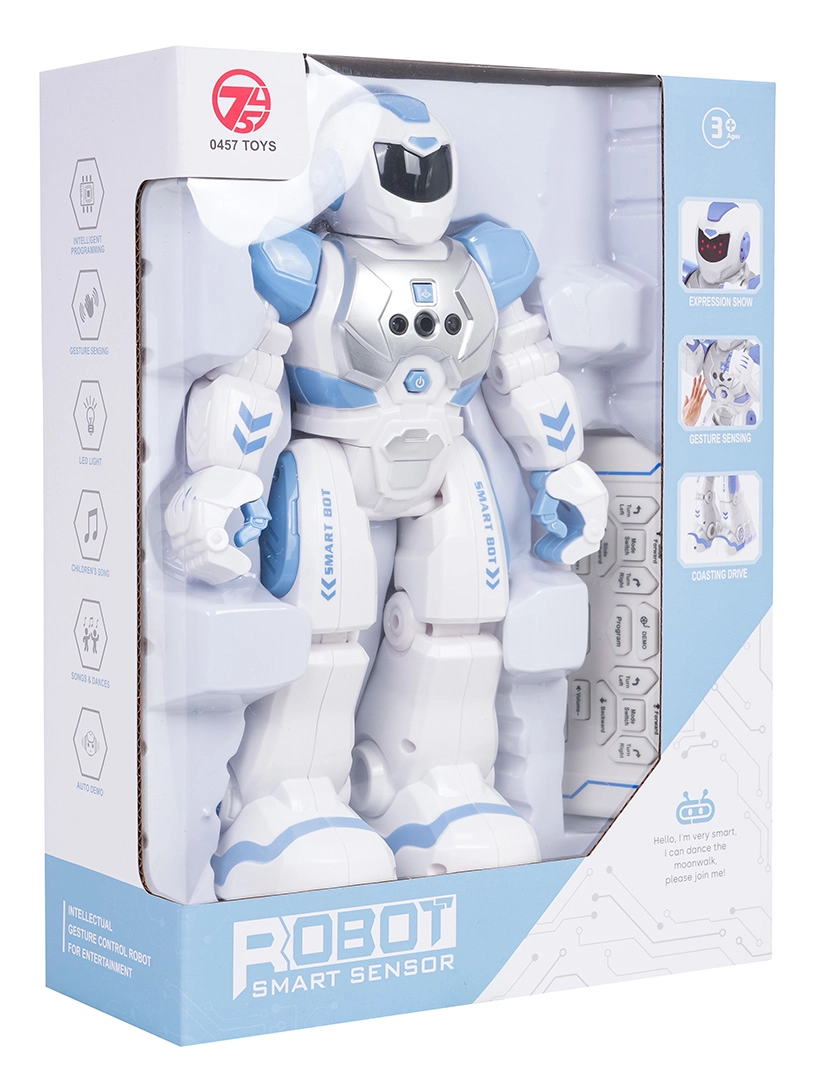 Il robot SMART-BOT, divertente e interattivo, per bambini dai 3 anni in su, offre ore di intrattenimento intelligente. Sa ballare, ruotare di 360°, camminare avanti/indietro, girare a sinistra/destra, muovere le braccia e reagisce a stimoli sensoriali. Il controllo avviene tramite un telecomando a 2,4 GHz; non mancano la programmazione dei movimenti, la modalità demo, gli occhi luminosi e allegre melodie e canzoncine. La batteria ricaricabile da 3,7 V è inclusa nella confezione.
