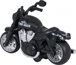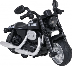 Realistica motocicletta in metallo in scala 1:16 che entusiasmerà i piccoli appassionati dai 3 anni in su. Ha una carrozzeria in metallo, pneumatici in gomma con buona aderenza e meccanismo a retrocarica (pull-back). Premendo la ruota posteriore si attivano effetti luminosi e suono di avviamento. Le batterie 3× AG3 sono incluse nella confezione.