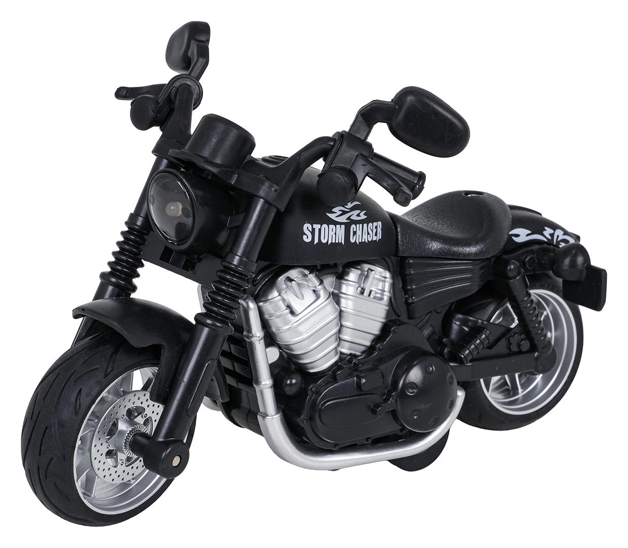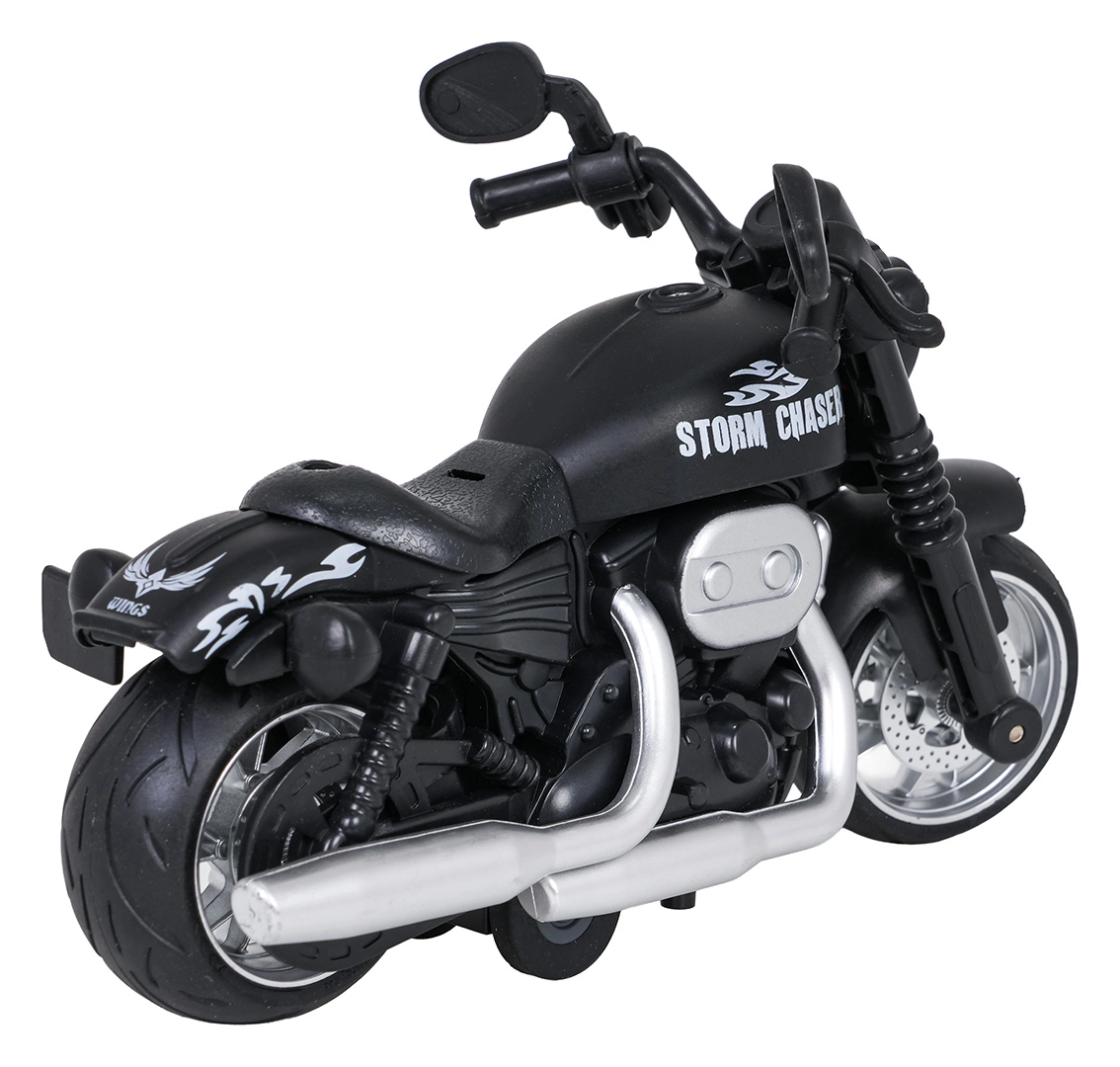 Goditi una guida ricca d’azione con il modello di moto STORM CHASER dai dettagli curati. La robusta costruzione in metallo, i dettagli realistici di motore e scarichi e gli pneumatici in gomma garantiscono un ottimo look e resistenza durante il gioco. Grazie al meccanismo a retrocarica basta tirare e rilasciare: la moto scatta in avanti.