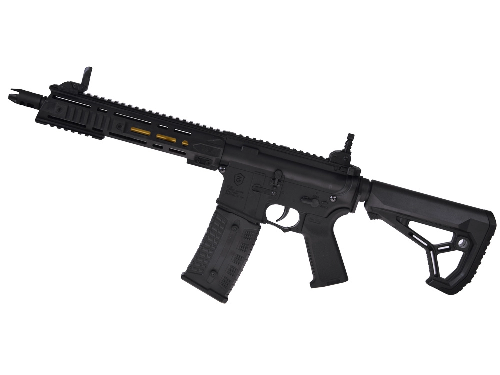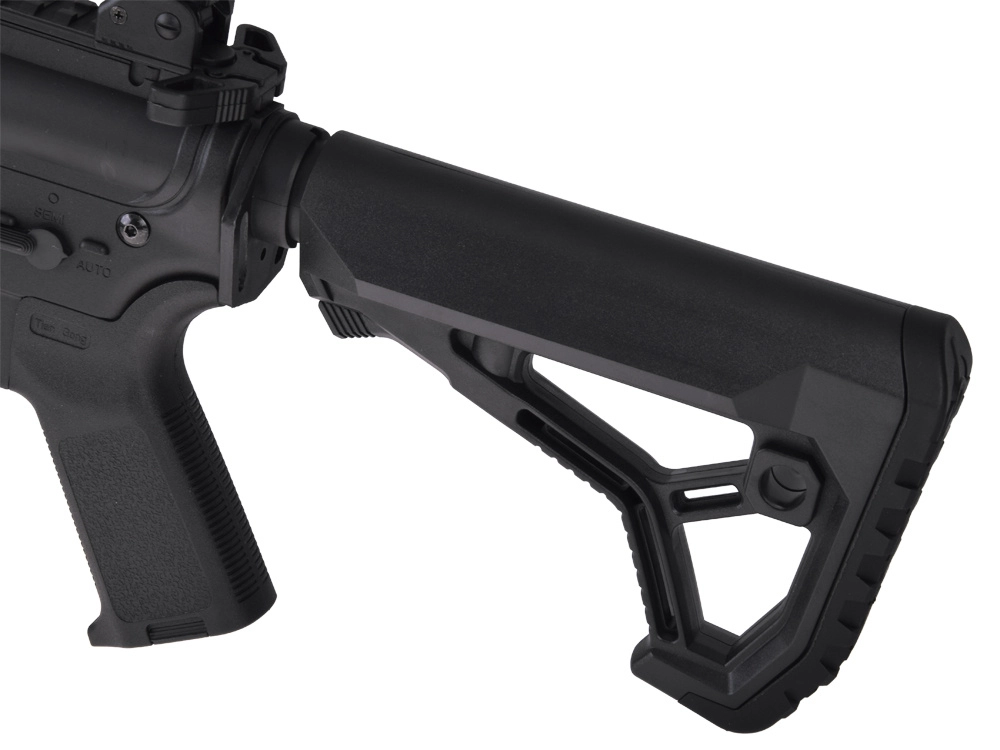 Il lungo astina anteriore con slitte di montaggio, le mire ribaltabili e il calcio regolabile intensificano l’esperienza di gioco e migliorano l’ergonomia dell’impugnatura.