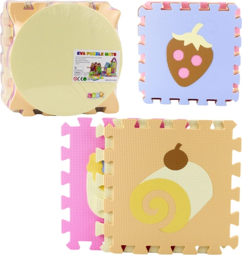 Questo tappeto educativo in schiuma è ideale per i primi passi, il gattonamento e il gioco quotidiano. I pezzi in morbida e flessibile schiuma EVA si collegano facilmente e permettono di creare una comoda area di gioco o semplici forme tridimensionali come una recinzione bassa. La palette pastello e i motivi come fragola, ananas, caramella e ciliegie invitano a scoprire colori e forme.
