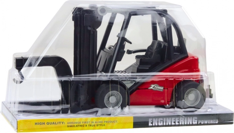 Realistico carrello elevatore per bambini in attraente design rosso e nero che offre una vera esperienza di lavoro in magazzino o in cantiere. Grazie alle forche mobili è possibile sollevare e abbassare il carico, favorendo il gioco creativo e lo sviluppo della motricità fine. La costruzione robusta in plastica di alta qualità e le dimensioni generose garantiscono divertimento sicuro e duraturo sia in casa che all’aperto.