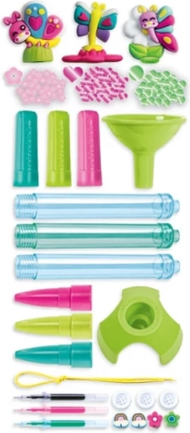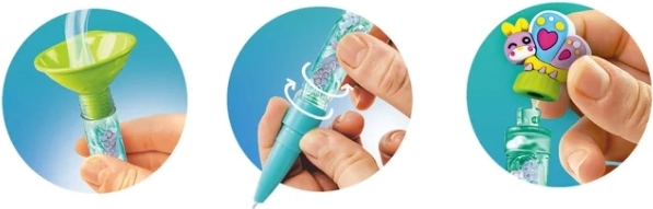Nella confezione troverai un corredo completo che include inchiostri colorati, tubicini trasparenti, decorazioni, perline e personaggi in gomma. I bambini possono così progettare il proprio stile, combinare colori e accessori e sviluppare creatività e manualità.