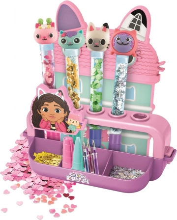 Scopri la divertente “fabbrica” di penne ispirata al mondo di GABBY’S DOLLHOUSE. I bambini possono progettare e decorare le proprie penne, combinando colori, glitter e adorabili motivi di gattini. Il set è ideale per i piccoli creativi che amano i progetti fai da te e desiderano avere il materiale scolastico proprio come piace a loro.