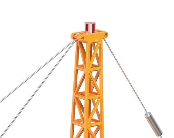 Braccio mobile, torre girevole, gancio con carrucola, effetti luminosi e sonori