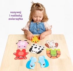 Dolci puzzle con animaletti per i più piccoli aiutano i bambini a comporre le prime immagini a due pezzi, sviluppando motricità fine, attenzione e vocabolario. Il semplice abbinamento di metà simmetriche porta gioia a ogni collegamento riuscito e sostiene creatività e apprendimento attraverso il gioco.