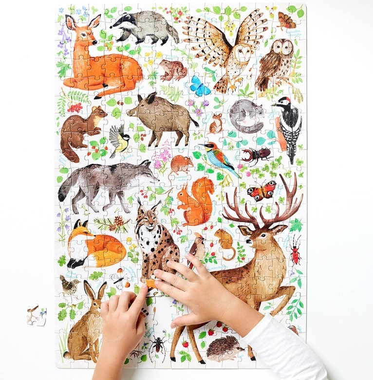 Scopri la magia del bosco e dei prati con splendidi puzzle da 300 pezzi riccamente illustrati. Bambini e adulti si divertiranno con un'attività educativa, sviluppando la motricità fine e il pensiero logico. Nella confezione è incluso anche un poster con fatti sugli animali del bosco, per stimolare la curiosità e l'apprendimento attraverso il gioco.