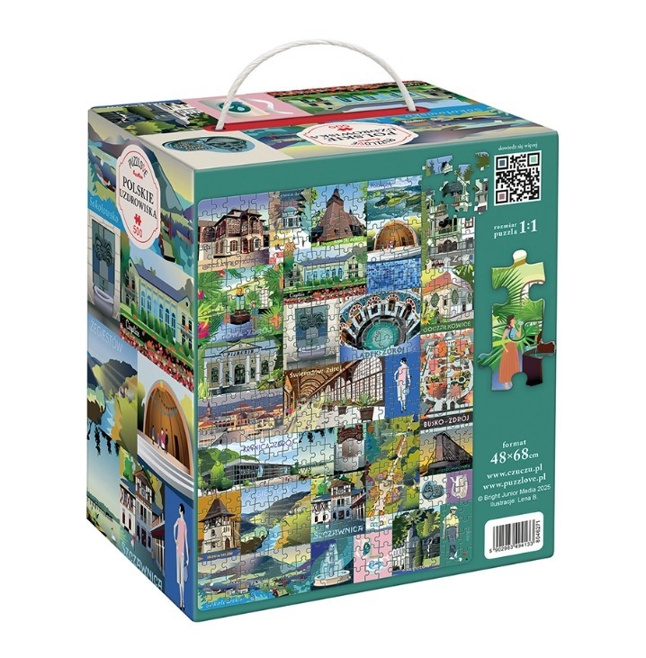 Scoprite il fascino delle città termali polacche con il bellissimo puzzle illustrato Puzzlove. Questo set da 500 pezzi offre divertimento rilassante, lavorazione di qualità e un motivo ricco di vedute pittoresche dalle più belle destinazioni termali sul mare, in montagna e presso i laghi. Ideale come regalo e, una volta completato nelle dimensioni di 48 × 68 cm, anche come elegante decorazione per interni.