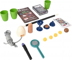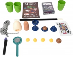 - Accessori magici: bacchetta, bicchierini e palline, scatolina per far sparire le monete, mazzo di carte, corda, dito, uovo e altri accessori.