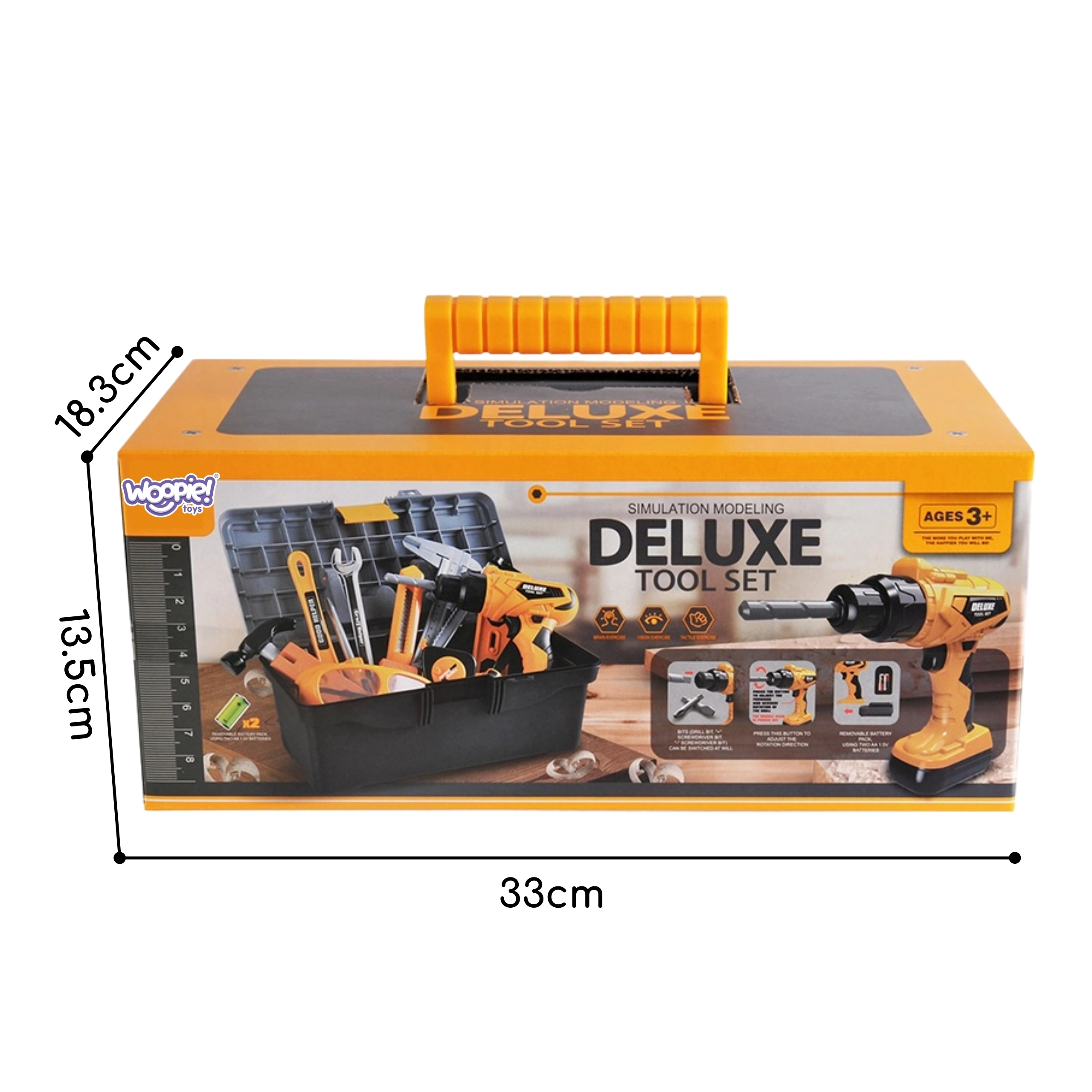 Il set perfetto per i piccoli tuttofare del marchio Woopie offre una vera esperienza di mini officina. Nella valigetta trovi 39 pezzi, tra cui un trapano avvitatore a batteria funzionante con accessori intercambiabili, occhiali protettivi e una pratica valigetta/armadietto per riporre tutto. Il giocattolo è sicuro e resistente e favorisce creatività, motricità fine e coordinazione. Il trapano richiede 2 batterie AA (non incluse).