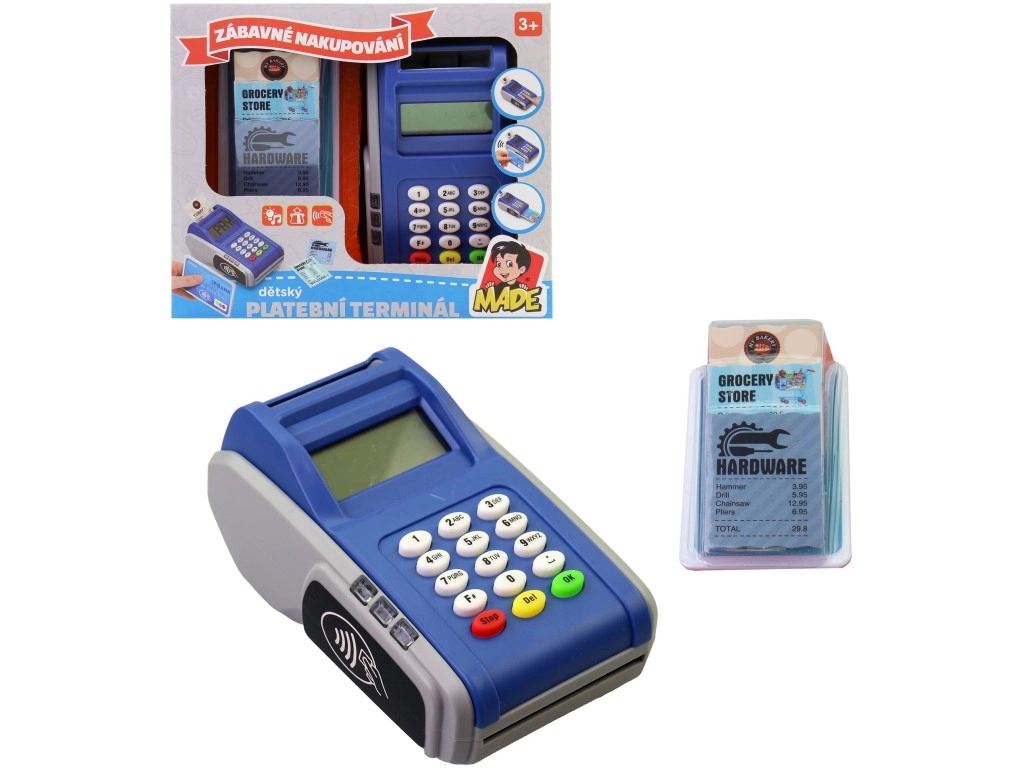 Il piccolo display, la tastiera numerica e i pulsanti funzione colorati insegnano ai bambini a inserire gli importi e confermare i pagamenti in modo divertente.