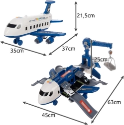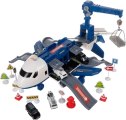 Grande aereo di polizia per bambini dai 3 anni che si trasforma in un parcheggio interattivo. Offre fiancate e rampe apribili, gru funzionante con comando di discesa, lanciatore di auto e effetti luminosi e sonori. Nella confezione trovi anche 4 automobiline della polizia e ricchi accessori stradali per ore di gioco creativo e apprendimento delle regole del traffico.