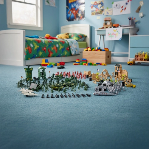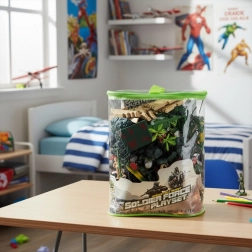 Grande set con fino a 300 pezzi per scenari militari creativi: soldatini in diversi colori, carri armati, aerei, cannoni, edifici e accessori. Mini figure in plastica resistenti in scala circa 1:40, il tutto riposto in una pratica custodia con zip e manico per un facile trasporto. Un regalo perfetto per sviluppare immaginazione, creatività e pensiero strategico.
