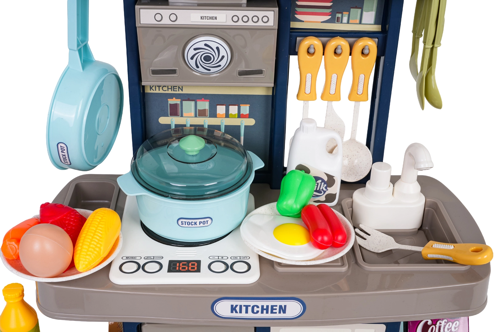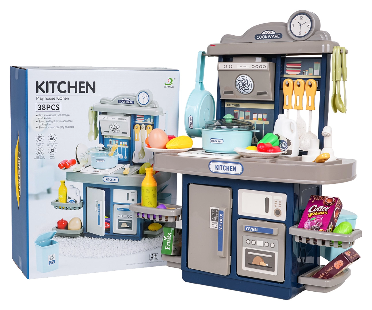 Questa cucina per bambini trasforma ogni giorno in un gioco creativo di cucina. Offre una piastra “a induzione” retroilluminata con suoni di cottura, frittura e melodie con possibilità di regolazione del volume, forno apribile e frigorifero. Grazie al rubinetto funzionante con pompetta, i bambini imparano le basi delle attività in cucina in modo sicuro e divertente.