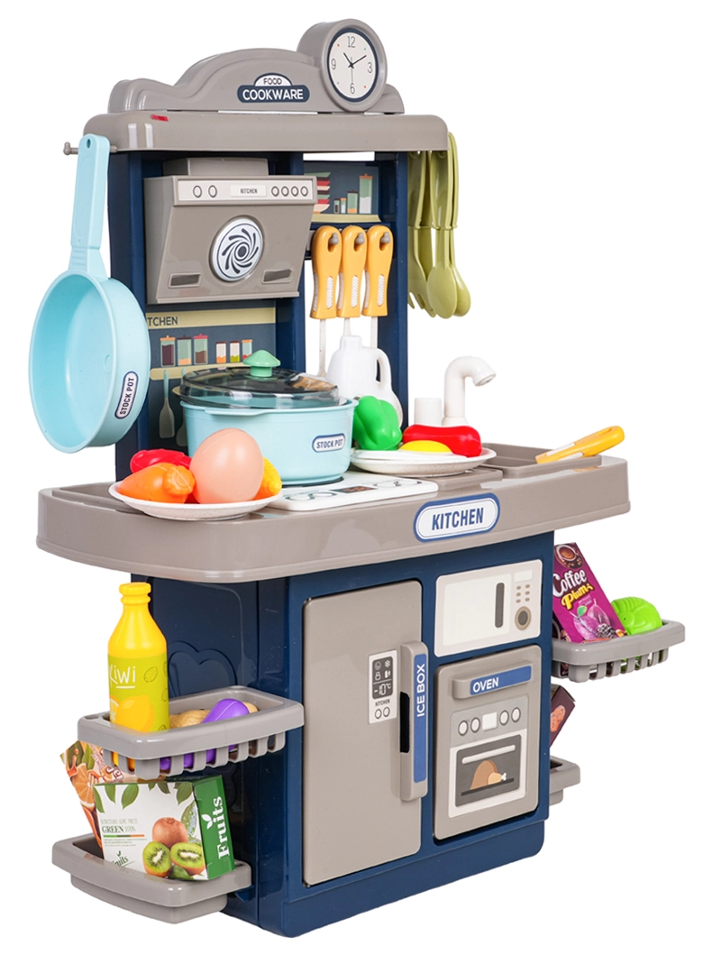 La cucina è realizzata in plastica di qualità e resistente dai colori vivaci e ha una struttura stabile. Include un ricco set di accessori: pentola con coperchio, padella, utensili, piattini, bevande e una variegata selezione di cibi finti. Un regalo ideale che favorisce il gioco di ruolo, la fantasia e l’autonomia.