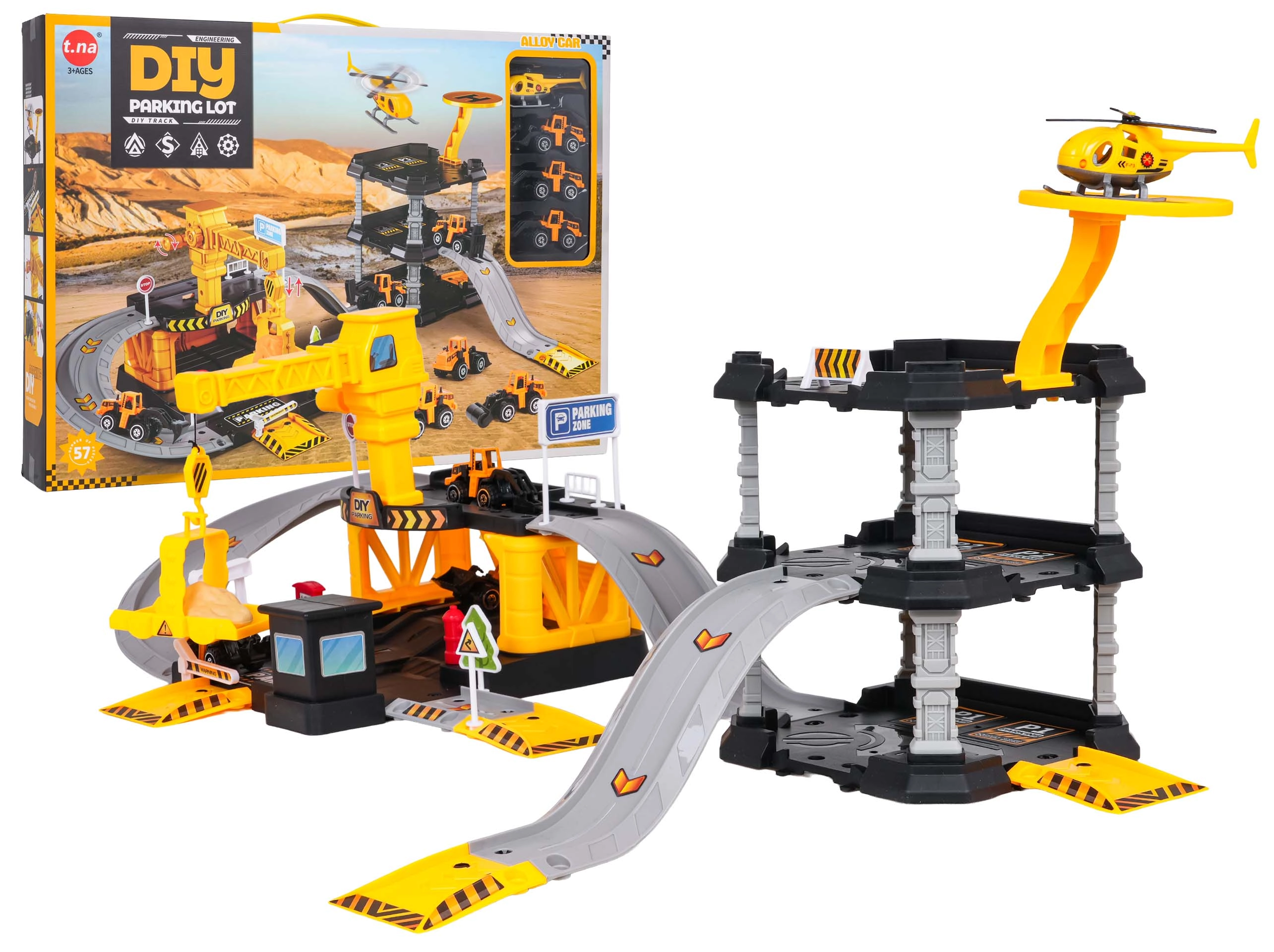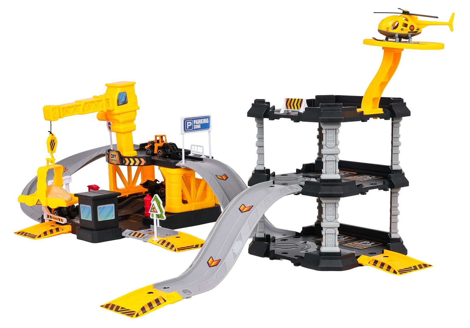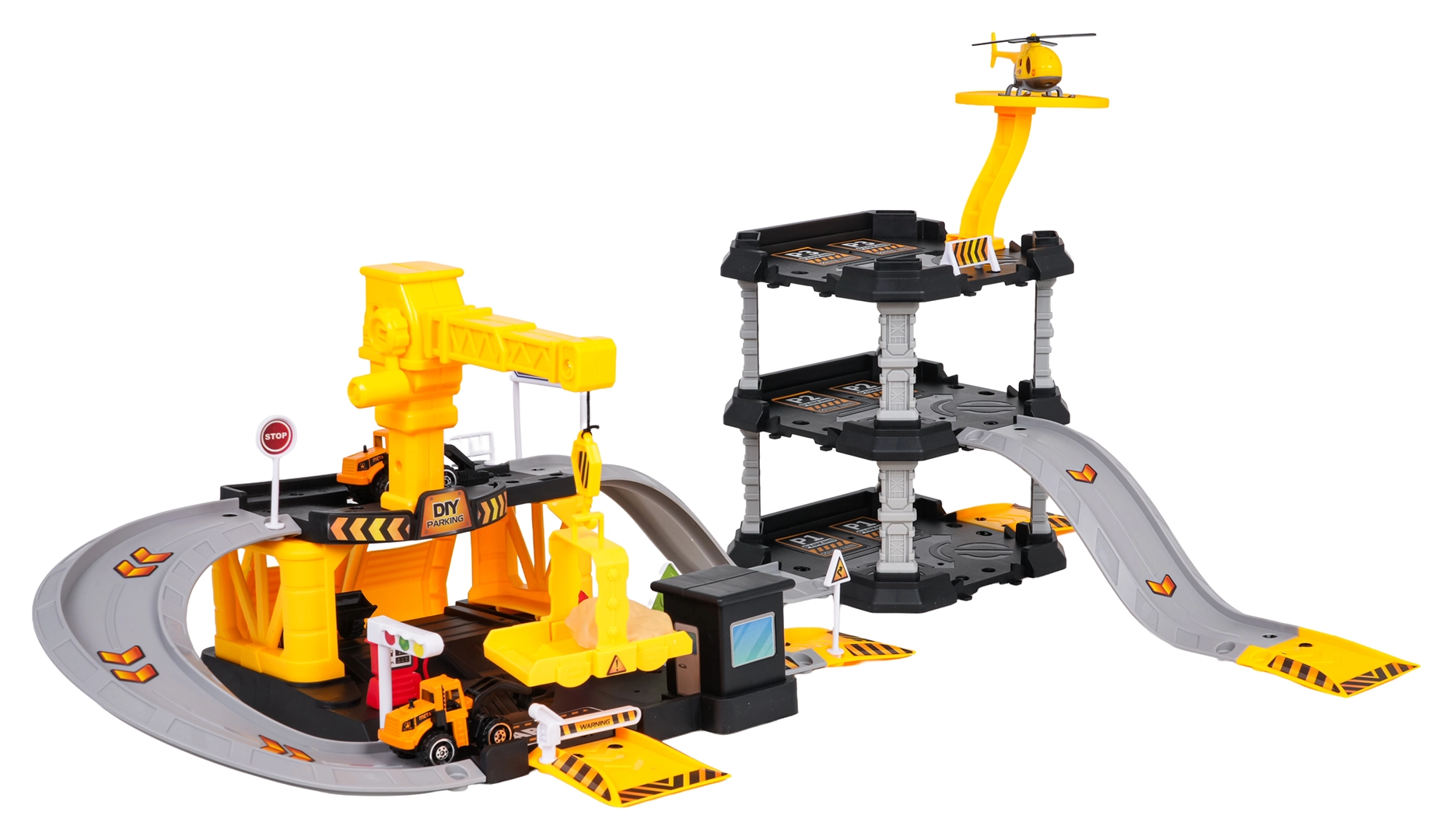 - Mondo di gioco completo: cantiere, gru, rampe, posti auto ed eliporto in uno.