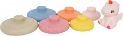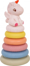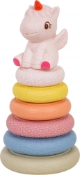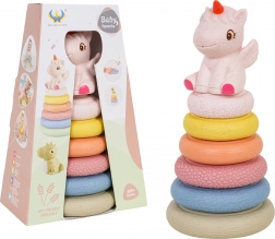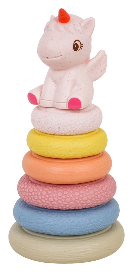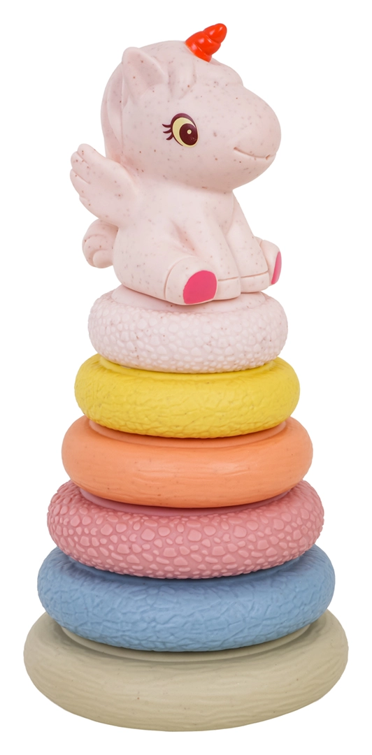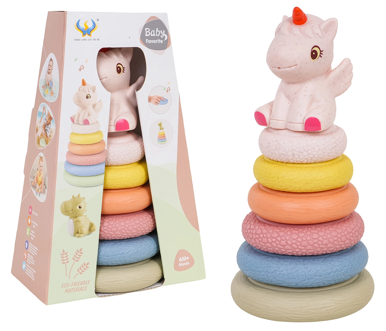 Una dolce piramide sensoriale con unicorno per bebè dai 6 mesi che sviluppa motricità fine, coordinazione occhio–mano e curiosità. Sei anelli pastello con texture diverse stimolano il tatto, mentre l’unicorno emette un squitto quando viene premuto, invitando al gioco. Realizzata con materiali ecologici per un divertimento sicuro e significativo.