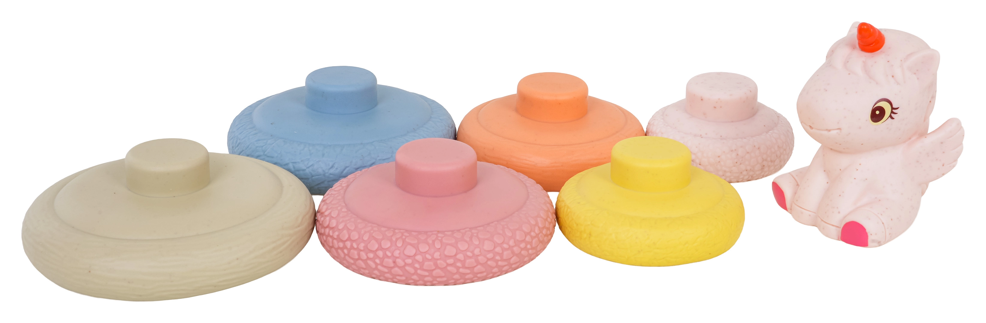 Questa piramide sensoriale eco è il primo gioco ideale per i piccoli esploratori. Sei anelli facili da afferrare con superfici differenti aiutano il bambino a distinguere forme e texture, sostengono la percezione dei colori e portano naturalmente ad allenare la presa e l’impilamento in ordine di grandezza. Il simpatico unicorno in cima squittisce quando viene premuto, aumentando l’attenzione e motivando a esplorare ulteriormente.