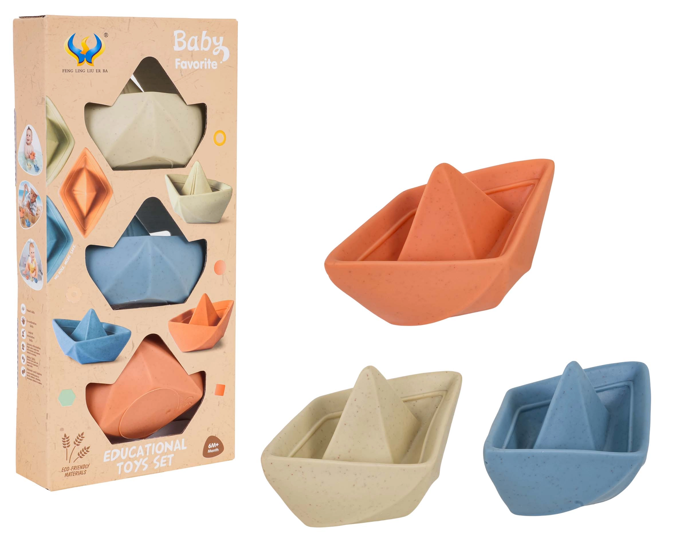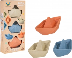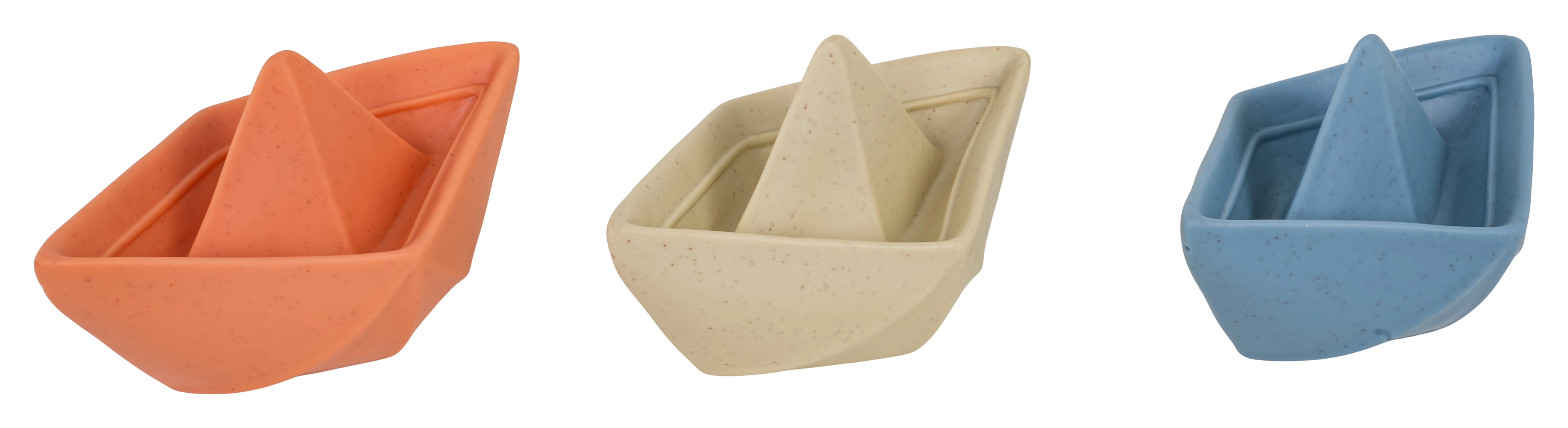 Questo set di tre adorabili barchette porta tanto divertimento ai bambini durante il bagnetto e i giochi all’asciutto. Il materiale resistente, piacevole al tatto e privo di sostanze nocive è delicato sulla pelle dei più piccoli e facile da mantenere. Grazie alla forma impilabile, le barchette si ripongono in un attimo.
