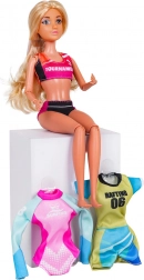 - bambola con outfit da pallavolo, rete da pallavolo, pallone, cappellino con visiera, scarpe sportive, trofeo/medaglia, occhiali, borraccia, tavola da surf/paddle, kayak, casco, pagaia, altri 2 outfit sportivi
