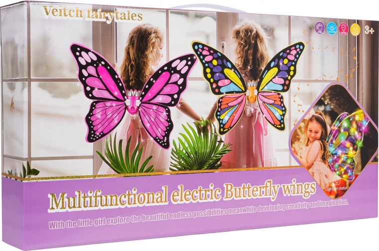 Grandi ali rosa con più modalità di illuminazione e battito che aggiungono un tocco magico a ogni gioco. Il controllo è semplice, l’effetto è coinvolgente e sicuro per i bambini.