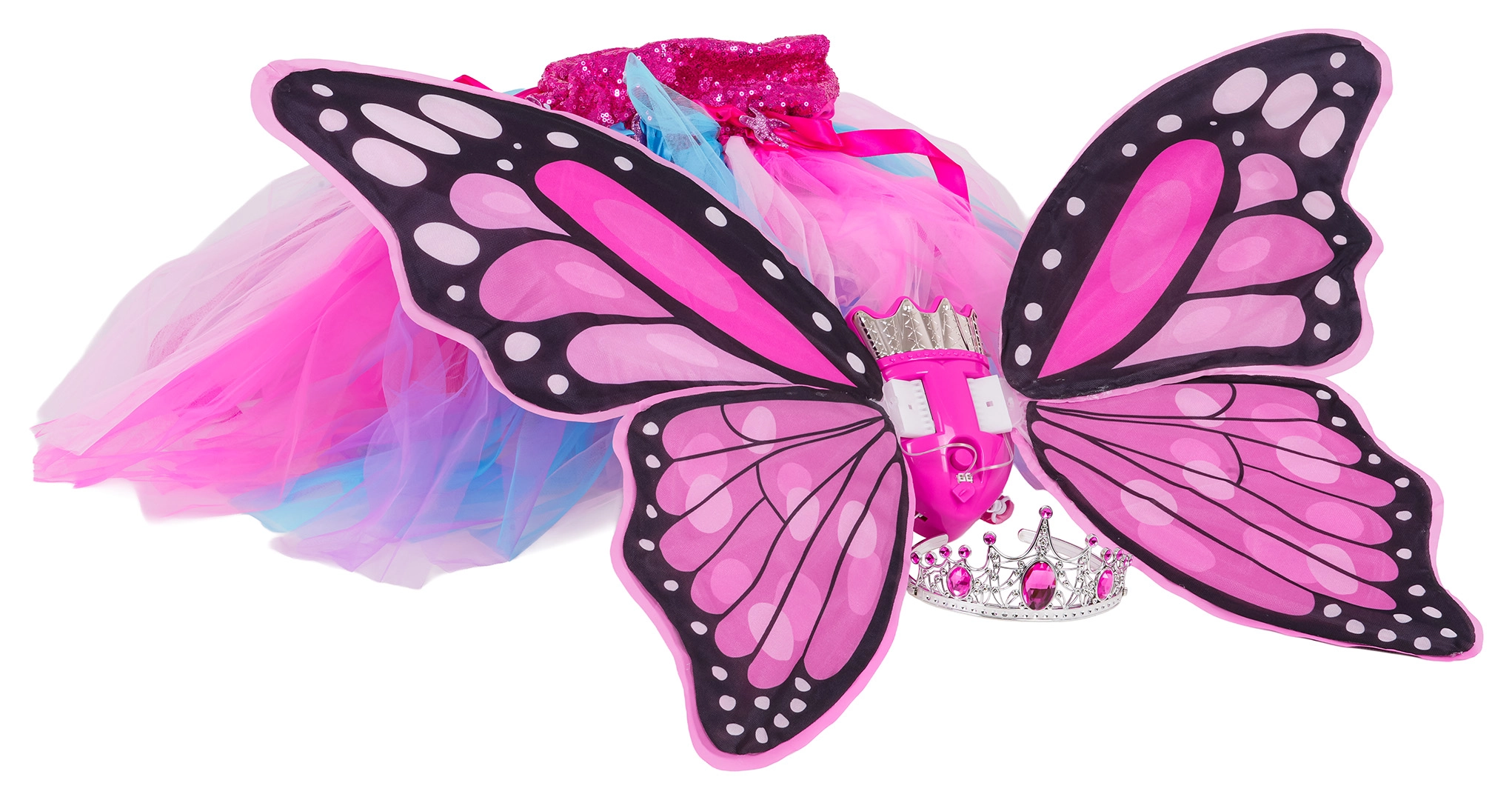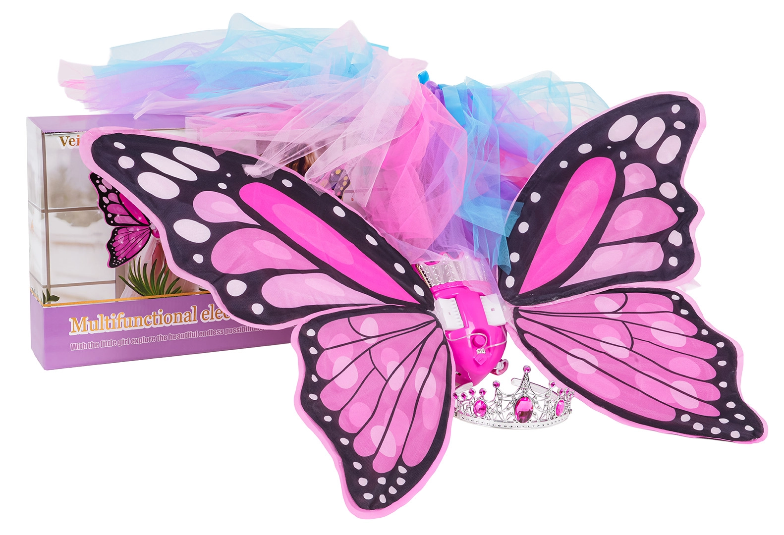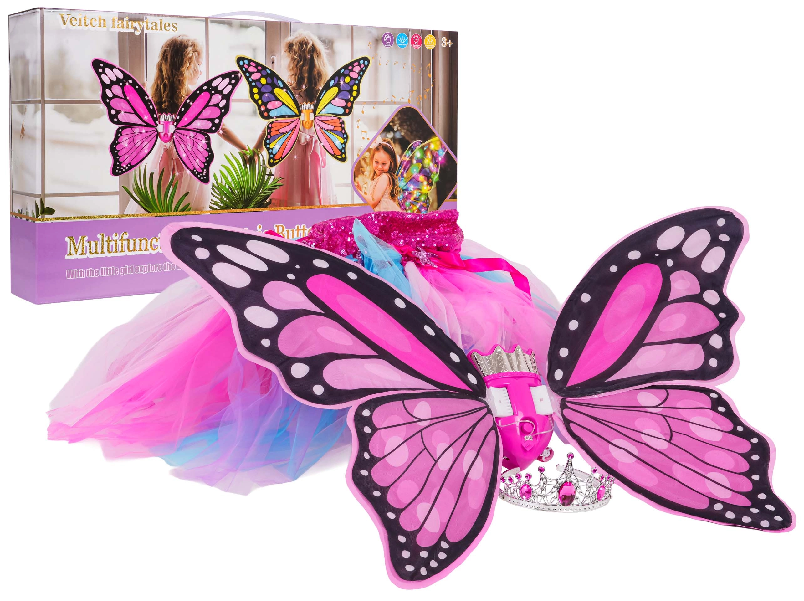 Accendi la fantasia dei bambini con questo set magico: grandi ali di farfalla rosa con luci e suoni, abito in tulle arcobaleno e coroncina scintillante. Grazie a spalline regolabili, materiali leggeri e più modalità delle ali, il costume è ideale per carnevali, spettacoli e giochi di travestimento quotidiani.