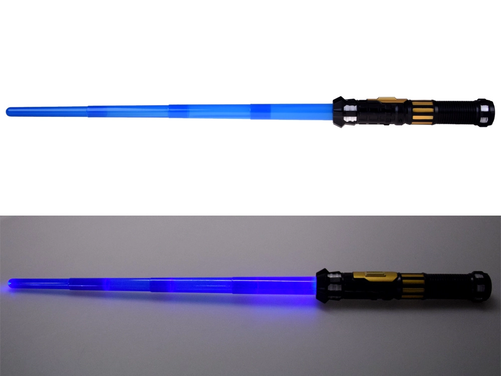 Diventa l’eroe della tua galassia con questa spada luminosa telescopica! La lama blu telescopica, effetti luminosi e sonori e l’impugnatura confortevole la rendono l’accessorio ideale per battaglie dei bambini e costumi. La spada si estende rapidamente con un colpo di polso e si illumina con un solo pulsante, così il divertimento può iniziare in un attimo.