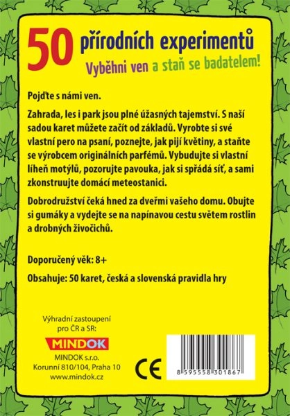 Corri fuori e diventa un piccolo scienziato! Questo set di 50 carte ti guiderà nel mondo delle piante e dei piccoli animali. Imparerai come bevono i fiori, realizzerai una penna per scrivere, costruirai una semplice stazione meteo e scoprirai i segreti della ragnatela. Ogni esperimento è spiegato in modo chiaro e adatto ai bambini.