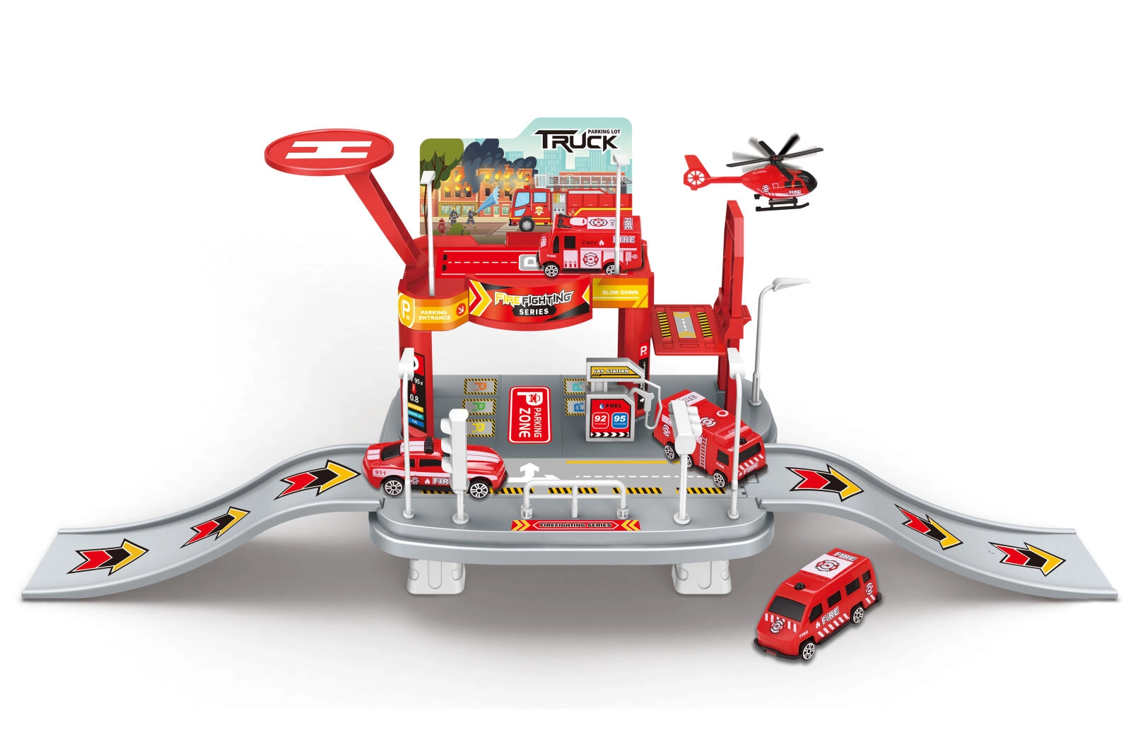 - Set completo: stazione dei vigili del fuoco, 4 auto, elicottero, eliporto, ascensore, stazione di rifornimento, segnali.