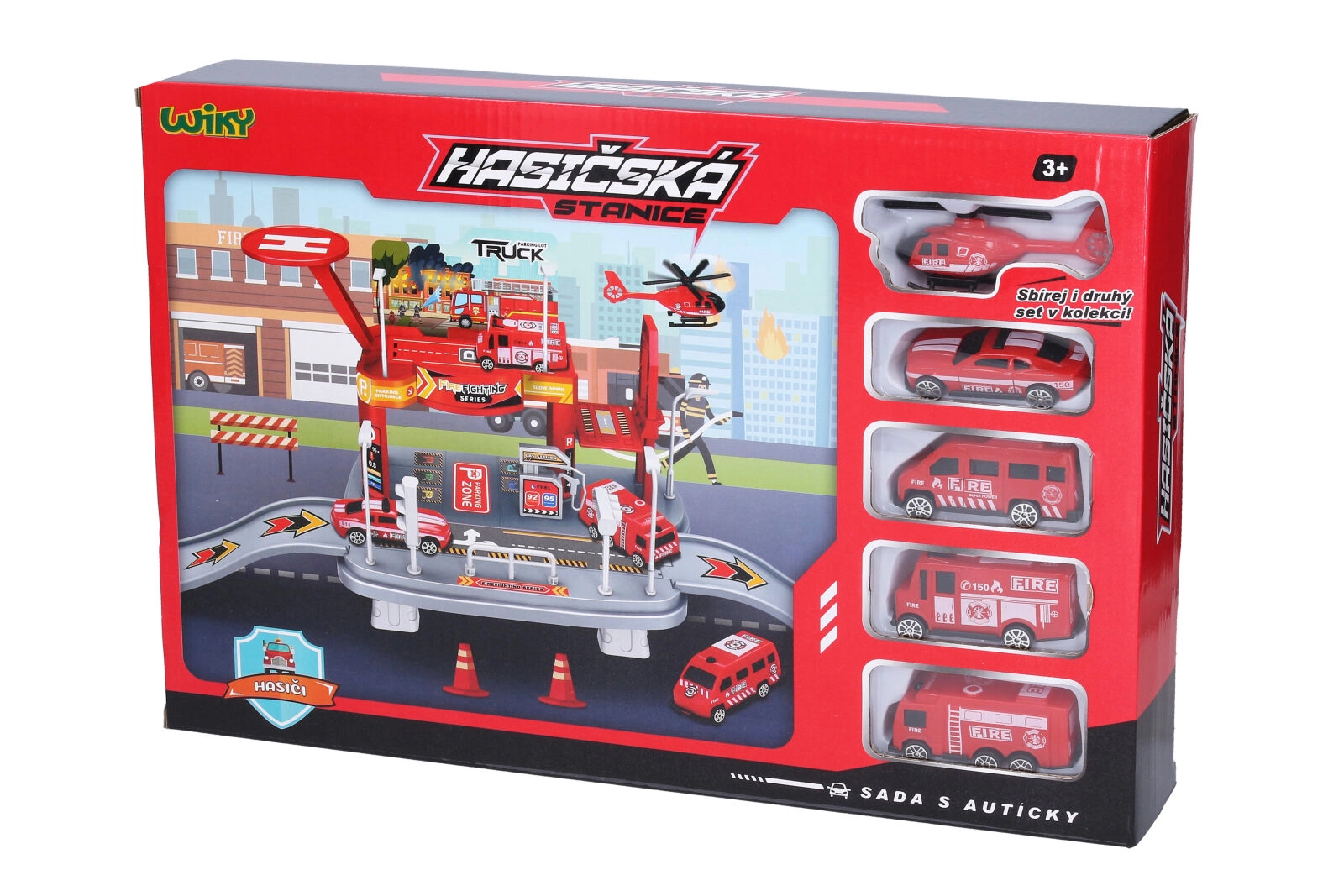 Il set di gioco contiene 4 auto compatte lunghe 7 cm e un elicottero lungo 9 cm – dimensioni ideali per le piccole mani dei bambini. La confezione in ceco con istruzioni illustrate sul lato della scatola consente un montaggio della stazione rapido e senza problemi.