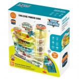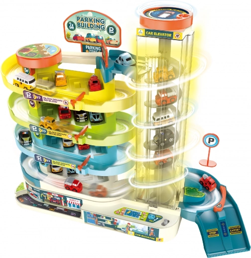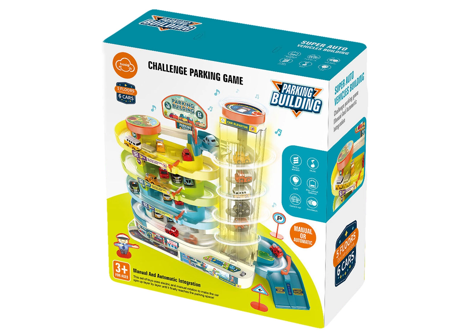 Questa garage a piani garantisce ai bambini ore di divertimento creativo. L’ascensore funzionante può essere utilizzato a batteria o manualmente (interruttore), così i bambini possono scegliere la modalità di gioco. Gli effetti luminosi e sonori donano ancora più autenticità al parcheggio e allo spostamento delle auto.