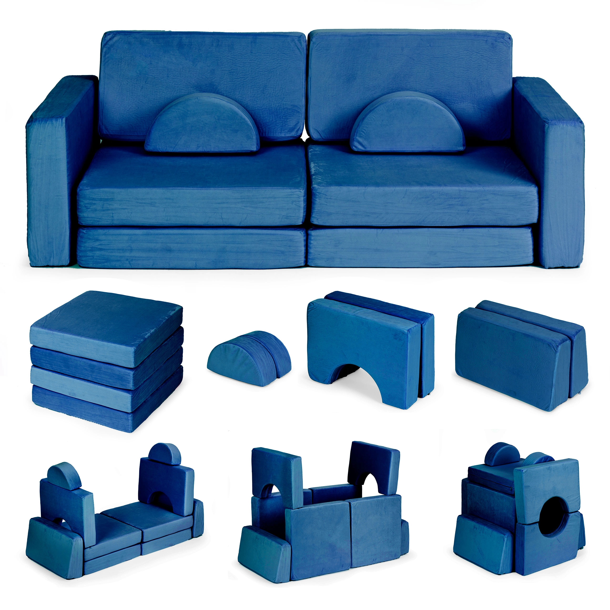 Divano modulare pieghevole per bambini per 2 bambini, 10 cuscini ECOTOYS – blu