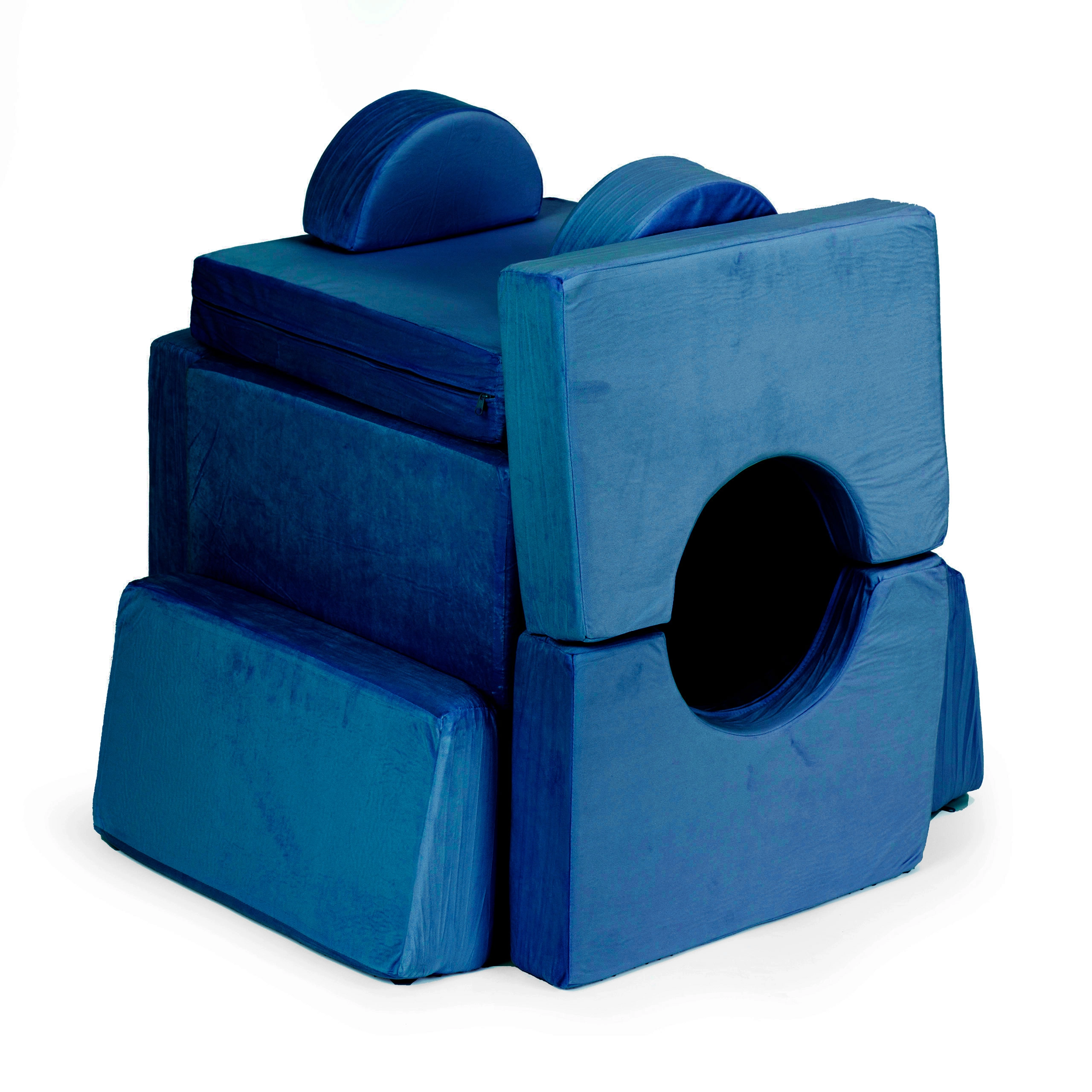 I pratici rivestimenti removibili con zip facilitano la manutenzione e mantengono il mobile igienicamente pulito. Il colore blu universale si adatta alla maggior parte degli interni di camerette e aree gioco. Grazie alla portata massima di 120 kg e alle dimensioni generose è ideale per due bambini contemporaneamente.