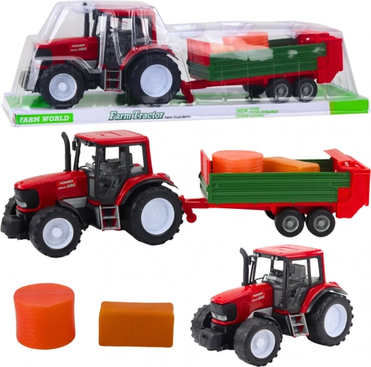 Trattore con rimorchio e balle di fieno, rosso, 62 cm