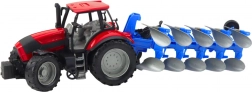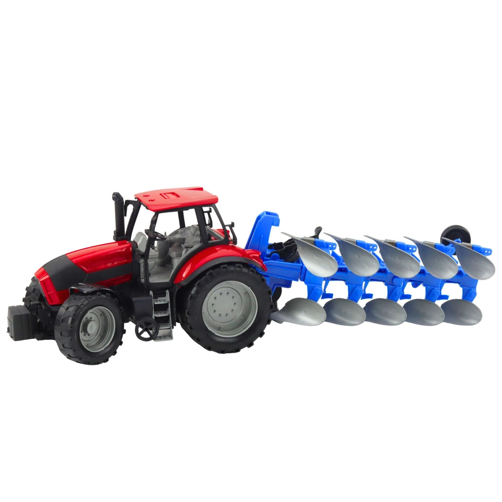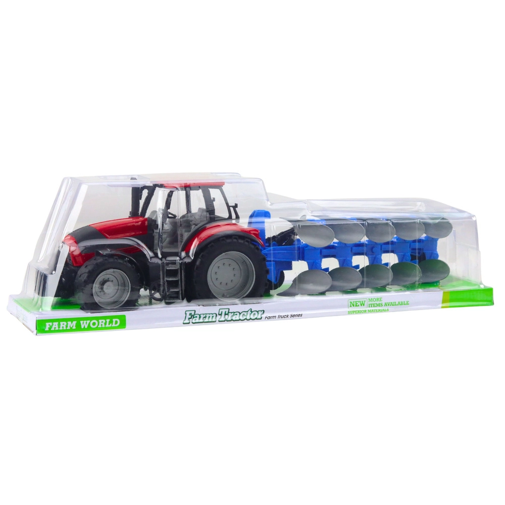 Realistico trattore con aratro per piccoli agricoltori, offre grandi dimensioni 50 cm, trazione posteriore e finiture dettagliate. Robusto trattore rosso con aratro blu multi-lama che stimola il gioco creativo e sviluppa la conoscenza del lavoro in fattoria. Ottimo come giocattolo e set educativo, fornito in confezione regalo con fronte trasparente.