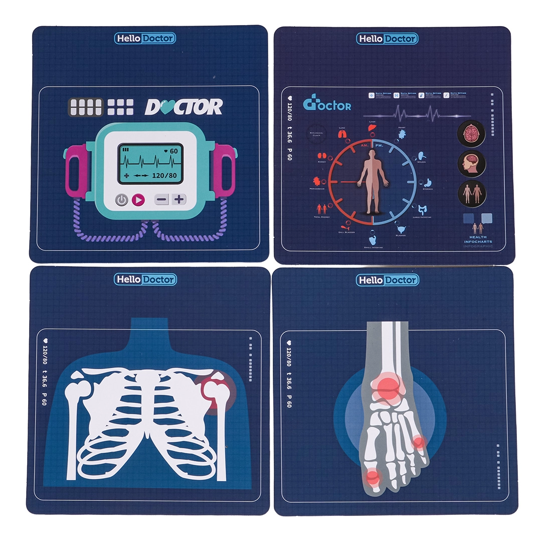 Battito cardiaco, misurazione della temperatura, suono della tomografia e allarme. Cuoricino retroilluminato sul display e immagini intercambiabili di ECG/tomografia per un gioco ancora più realistico.