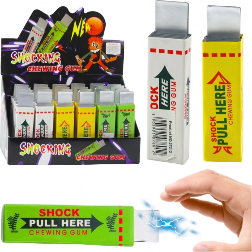 A prima vista una normale gomma da masticare, in realtà un ingegnoso gadget scherzoso. Tirando la “striscia” genera un leggero impulso elettrico, sicuro per la salute ma capace di sorprendere chiunque. Grazie all’aspetto realistico è ideale per scherzi alle feste, per burloni e come regalo originale.