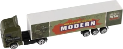 Scopri un camion con semirimorchio realizzato con grande cura dei dettagli, immancabile in qualsiasi collezione di macchinine. La cabina in metallo conferisce al modello un aspetto realistico e maggiore resistenza, mentre gli accessori in plastica mantengono il peso contenuto per una maneggevolezza facile. Grazie alla trazione a ruote libere è sufficiente una leggera spinta e il camion parte in modo fluido.