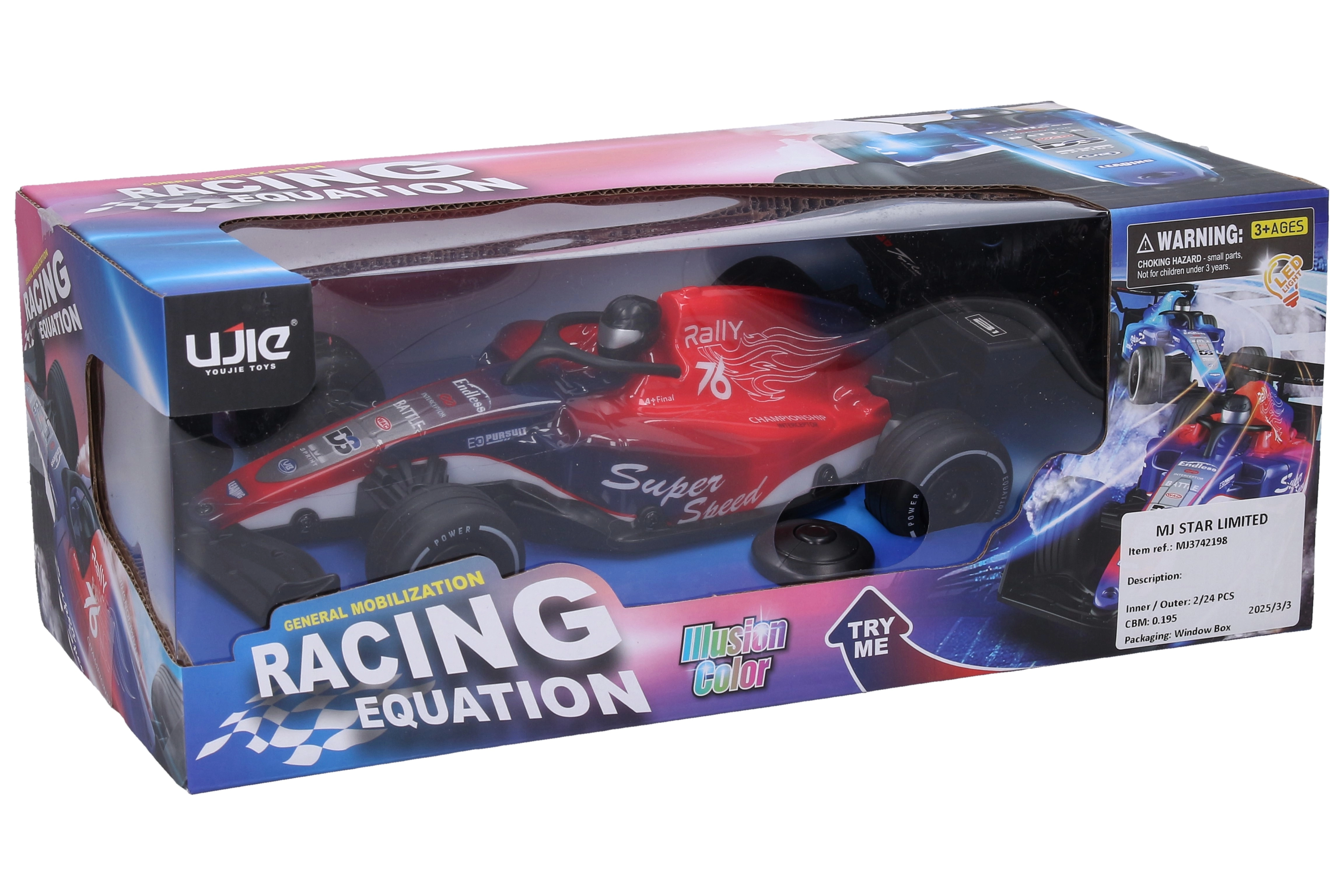 L’auto da Formula RC luminosa offre un eccellente equilibrio tra divertimento e semplicità. Le dimensioni compatte 25,5 × 11,7 × 7,3 cm e l’interruttore ON/OFF sul lato inferiore garantiscono un utilizzo confortevole. L’illuminazione della carrozzeria dona un look accattivante, perfetto sia in casa sia all’aperto.