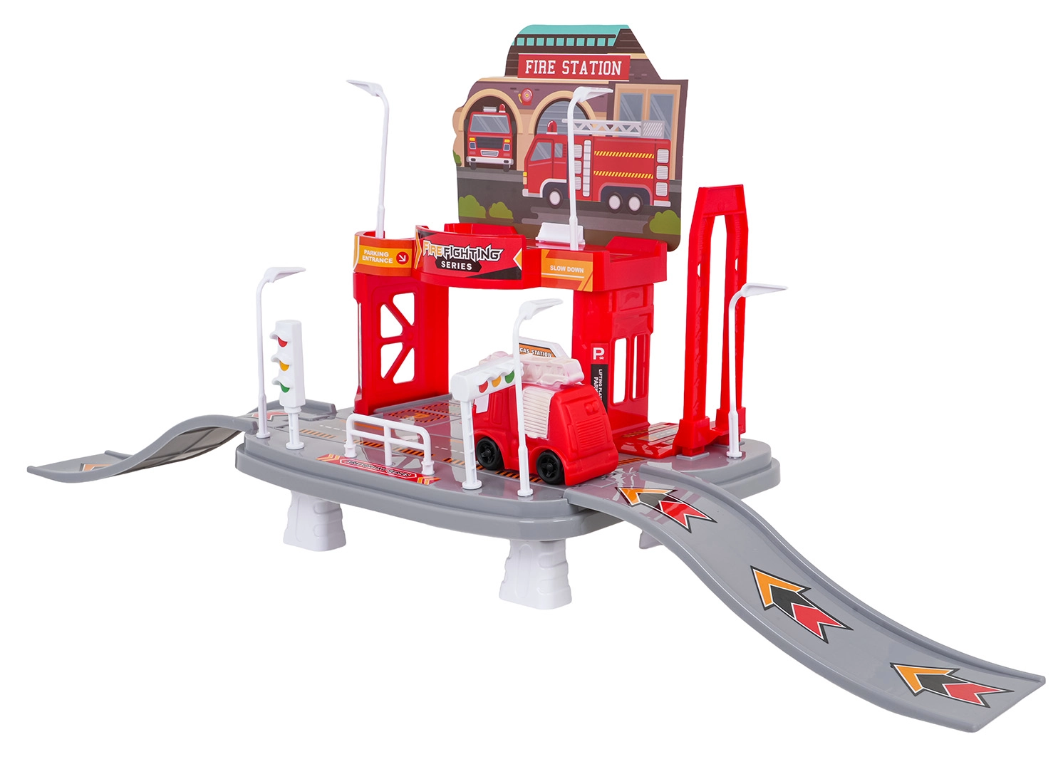 Inclusa una macchinina dei pompieri in silicone morbido con scorrimento fluido delle ruote, sicura per le mani dei più piccoli. I pezzi sono in materiali di qualità dai colori vivaci e, una volta montato, il set occupa poco spazio: ideale per la cameretta.