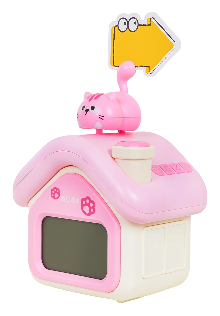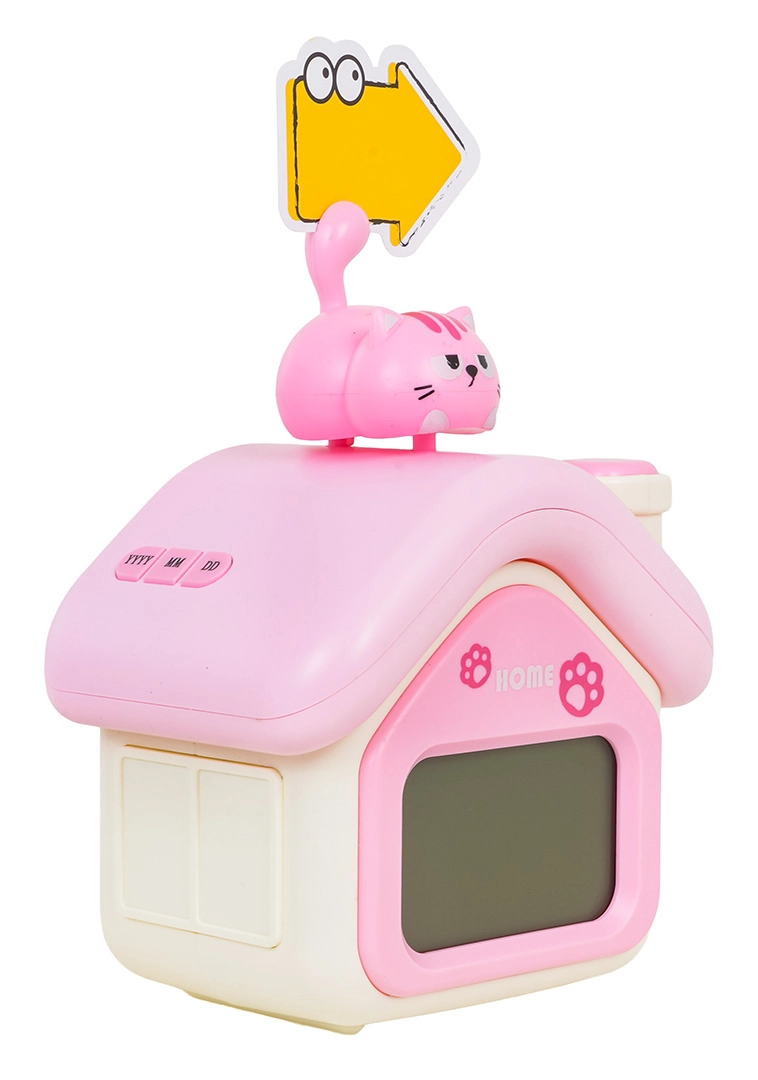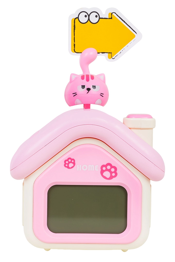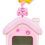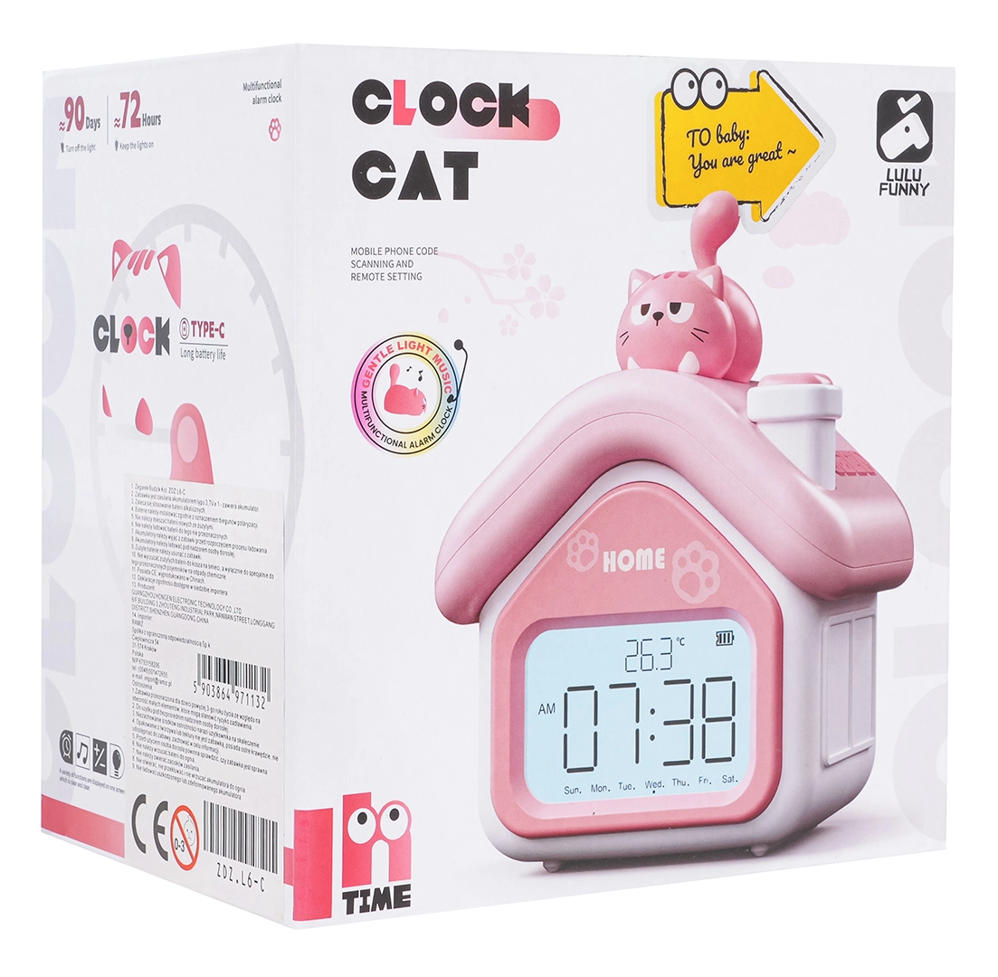Questa simpatica sveglia a forma di casetta rosa e bianca con gattino piacerà ai bambini dai 3 anni in su. Offre un chiaro display digitale, una delicata luce notturna, allarme con funzione snooze/posticipo e indicatore della temperatura. La batteria integrata da 3,7 V 1200 mAh si ricarica tramite il moderno connettore USB‑C, eliminando la necessità di sostituire le batterie.