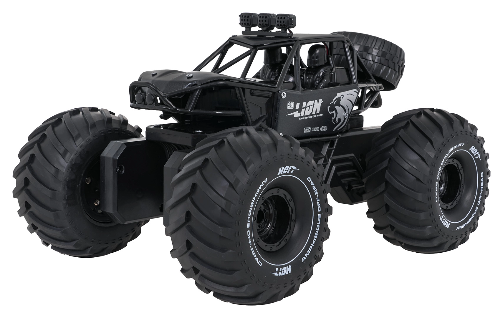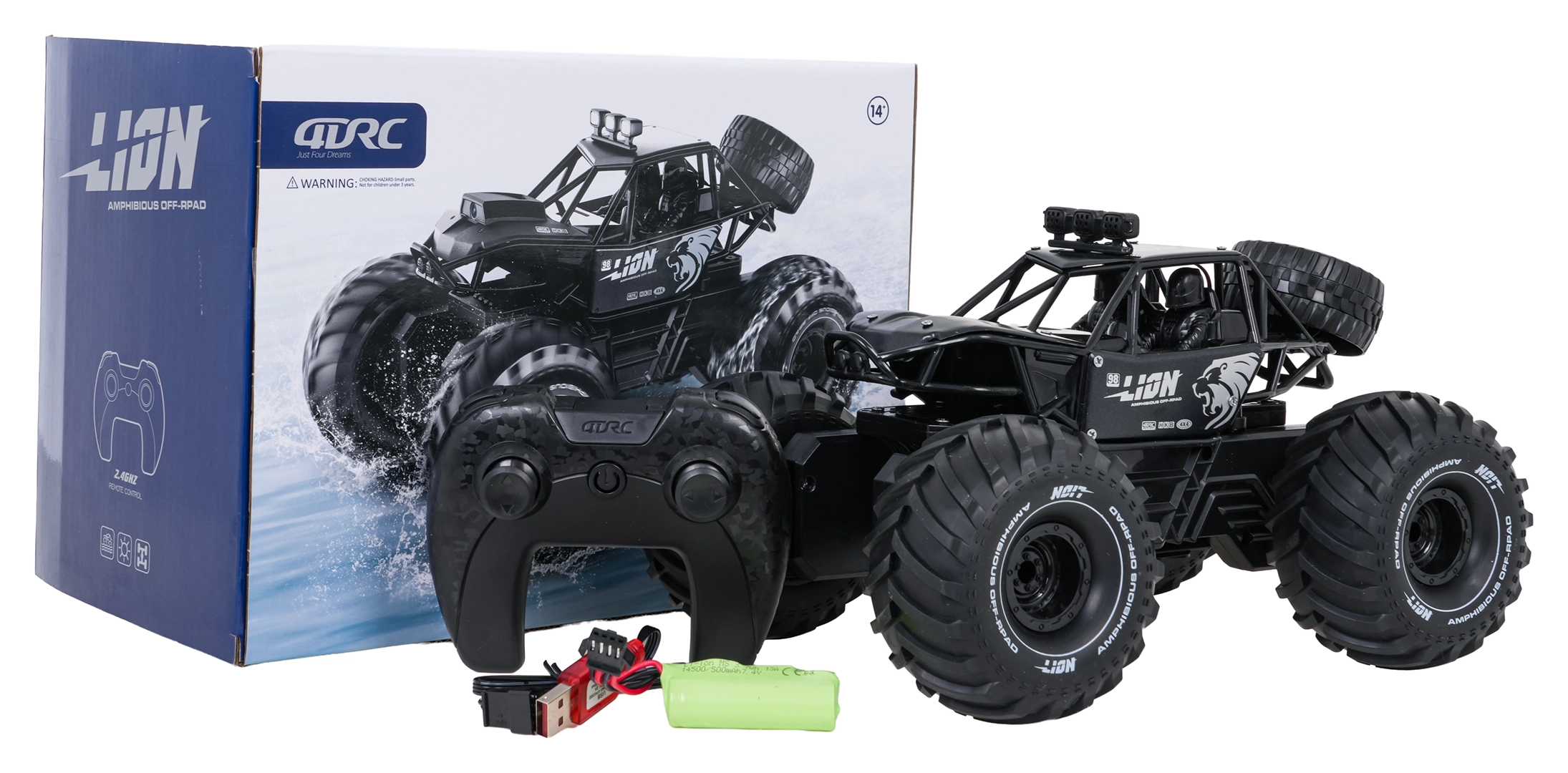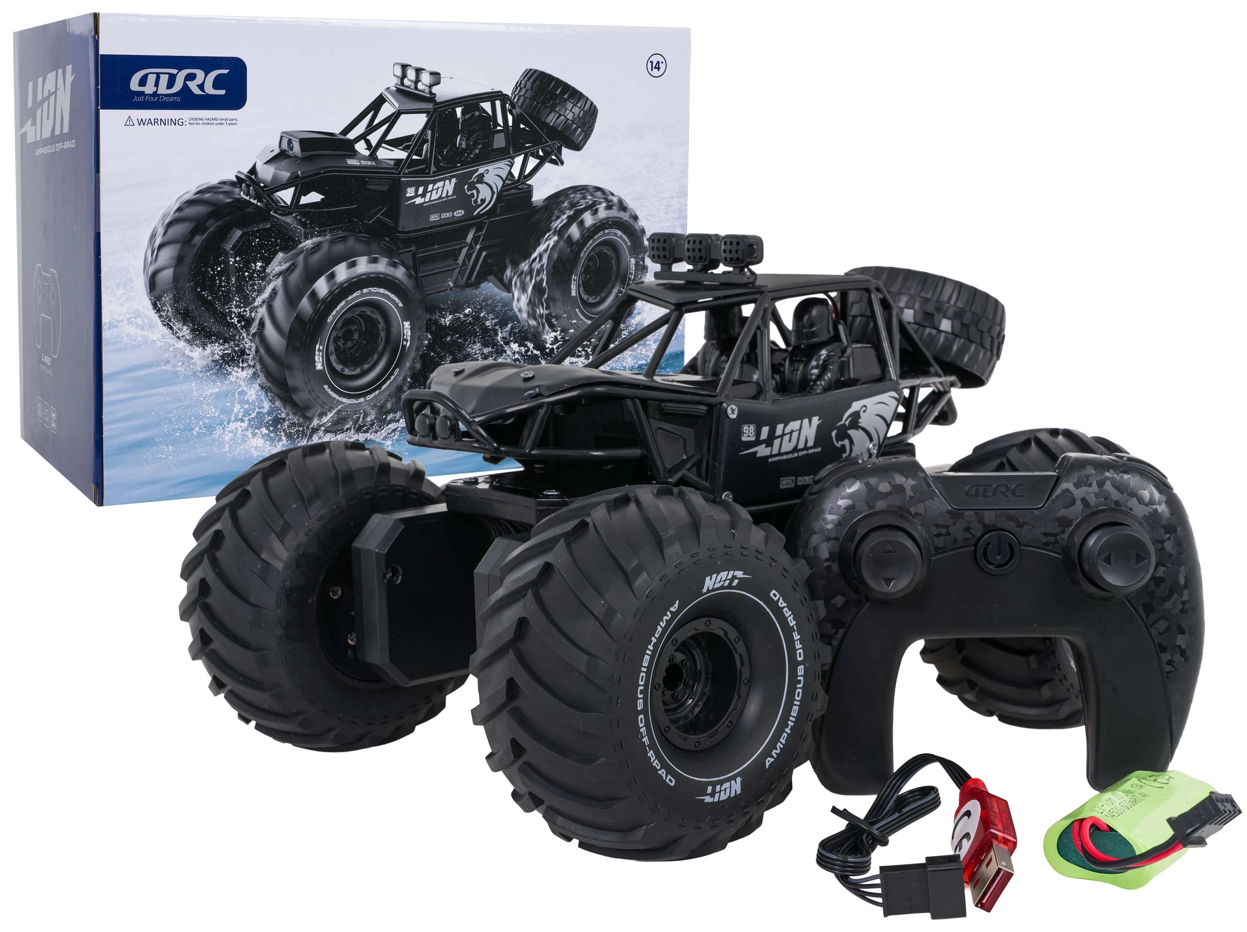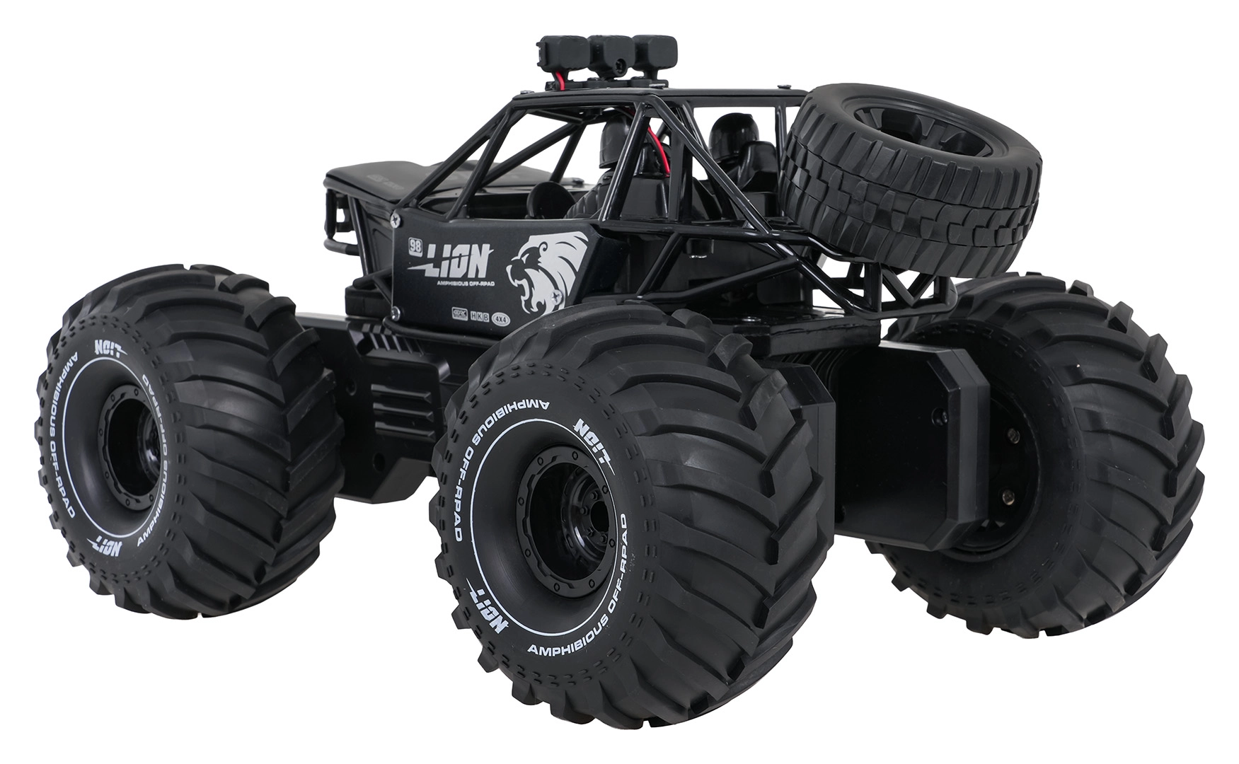 L’auto fuoristrada RC LION in nero combina una robusta carrozzeria in metallo con trazione 4x4 per la massima sicurezza sul terreno. Le grandi ruote antiscivolo con battistrada pronunciato affrontano ghiaia, erba e irregolarità, mentre la struttura antiurto protegge il veicolo dagli impatti. Il controllo a 2,4 GHz garantisce portata stabile senza interferenze.