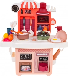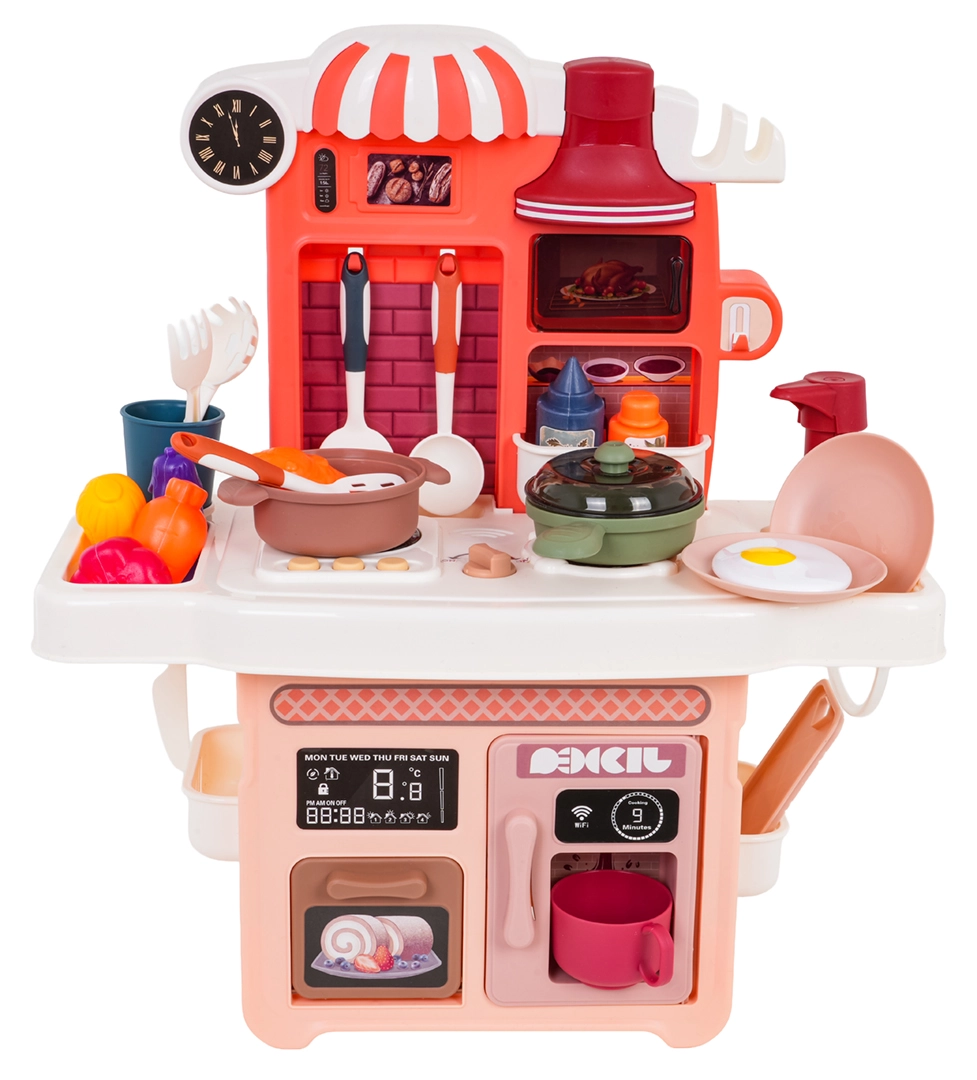 Scopri la gioia di cucinare con questa cucina interattiva rosa per bambini dai 3 anni. Offre effetti luminosi, suoni realistici di cottura e frittura, un rubinetto funzionante con acqua (a pompetta) e ricchi accessori per un gioco creativo. Non mancano bruciatori retroilluminati, forno apribile, imitazione di macchina del caffè e cappa illuminata.