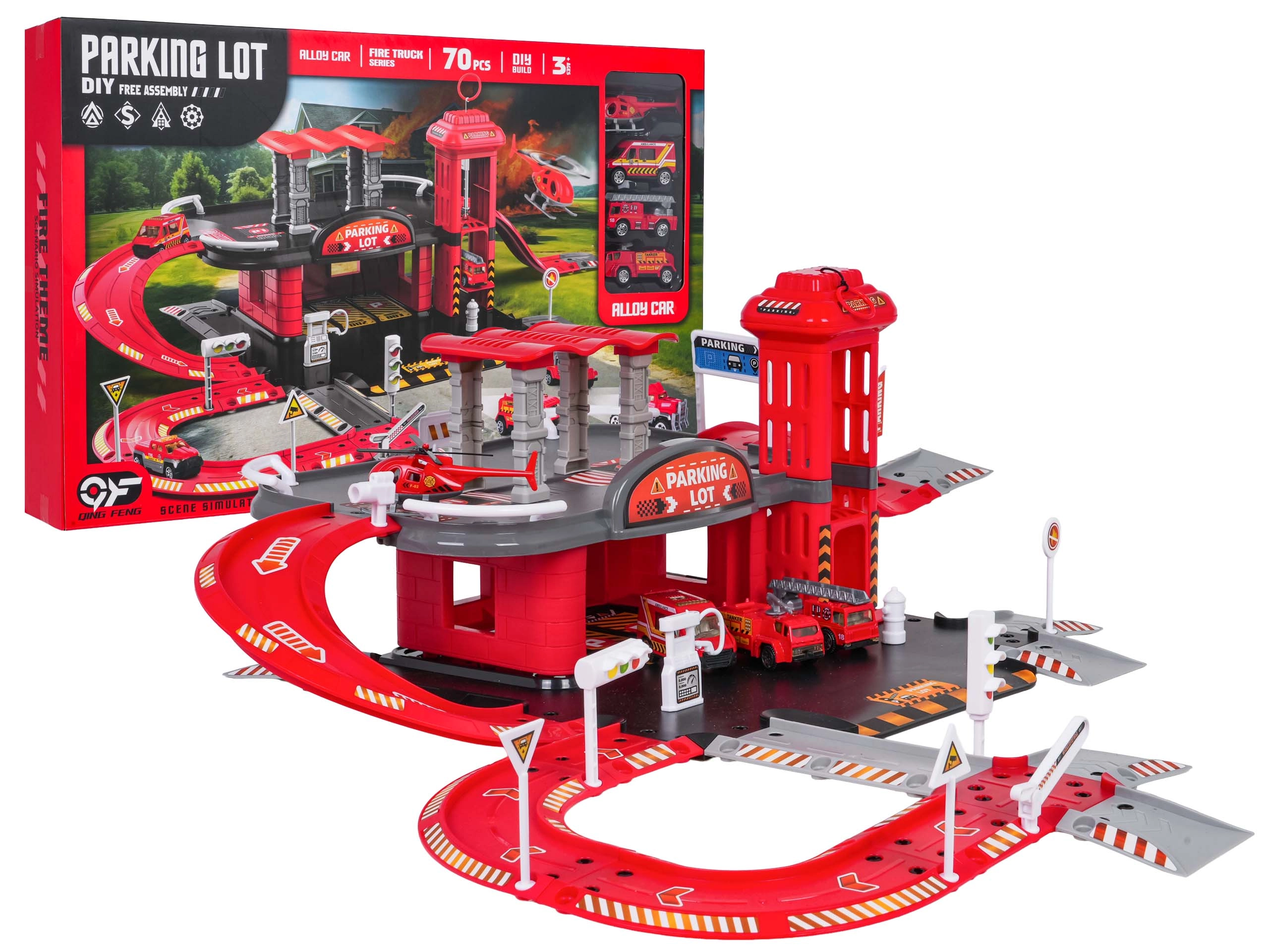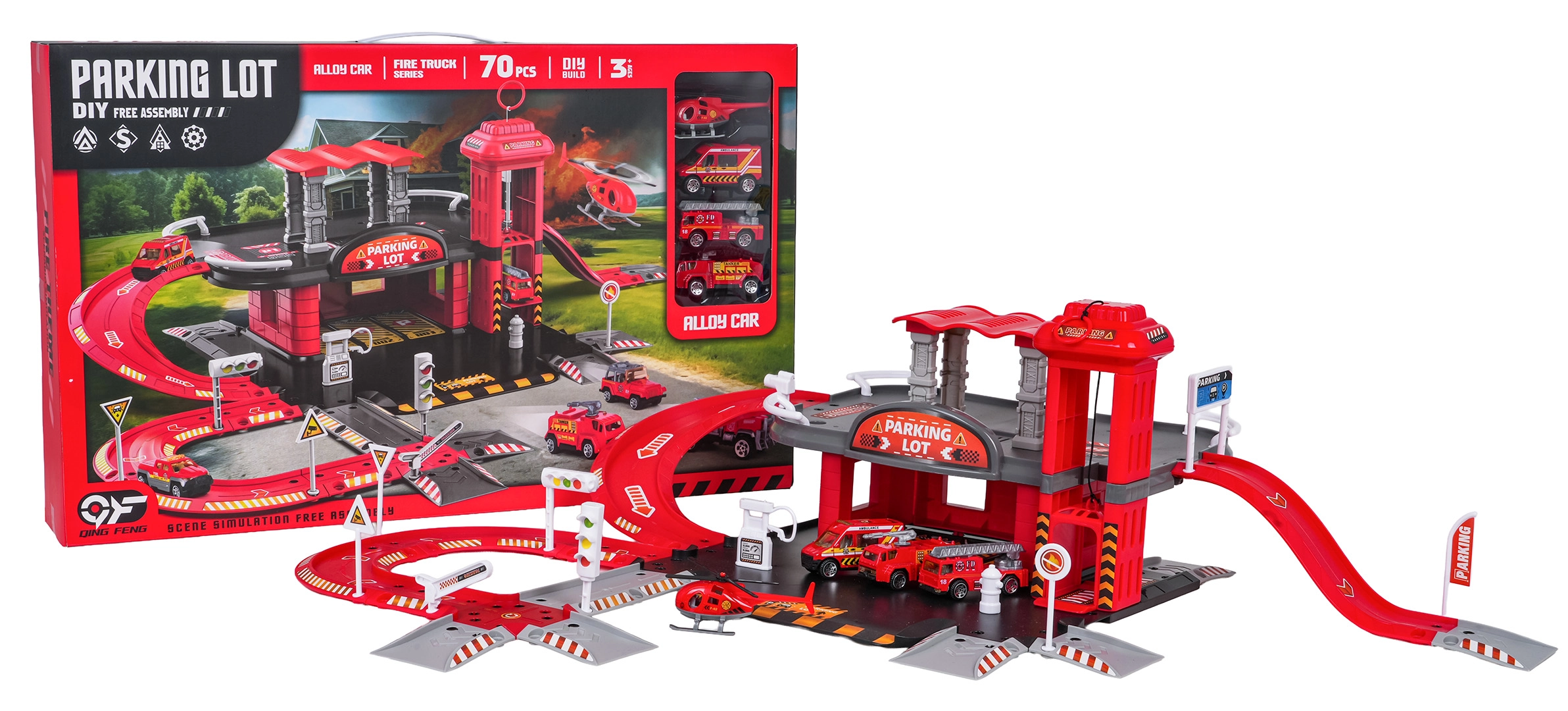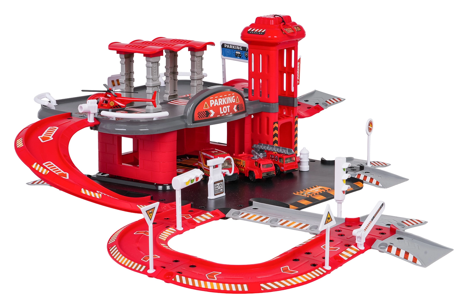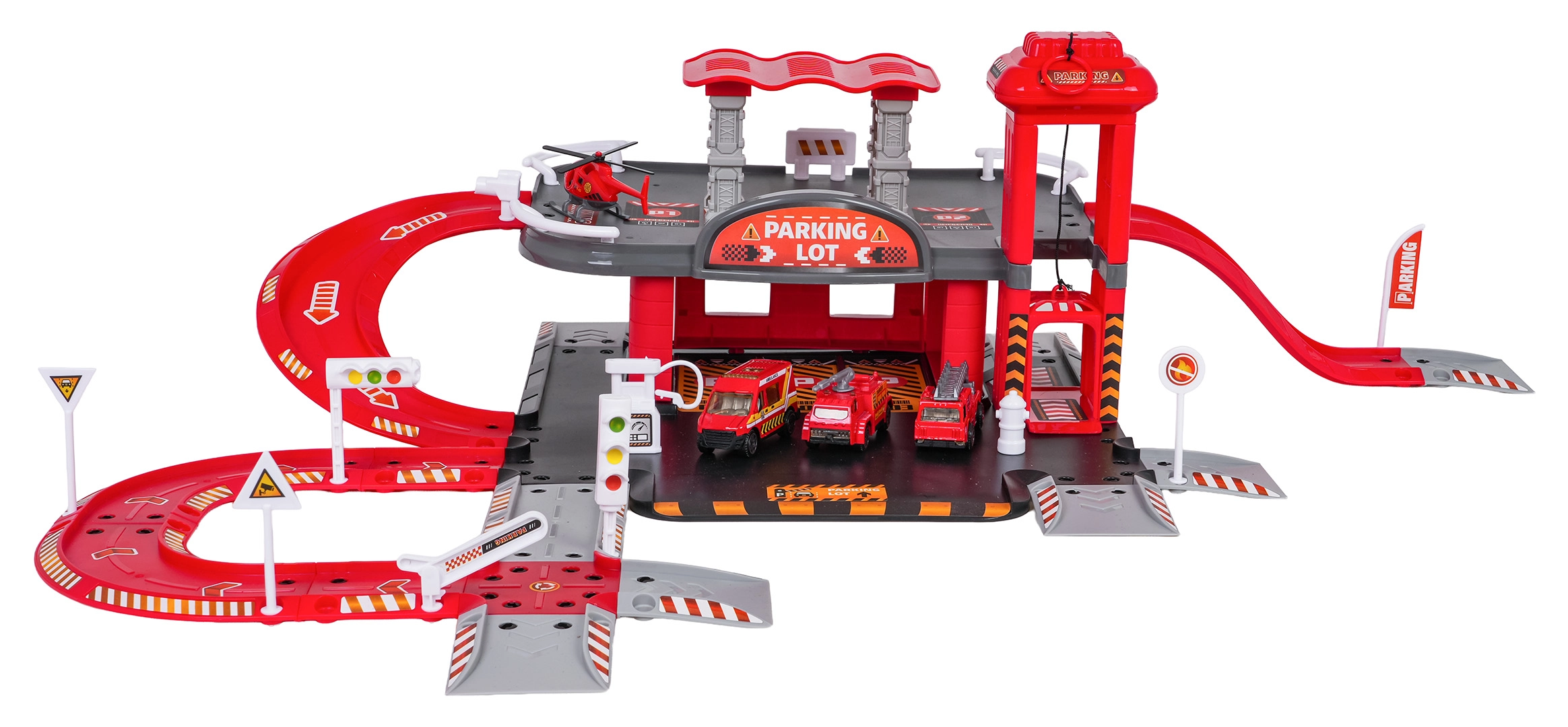 Questo set dettagliato della stazione dei pompieri combina divertimento e sviluppo delle abilità. I bambini possono fare rifornimento al distributore, percorrere la strada, portare il veicolo al piano superiore con l’ascensore manuale e parcheggiare negli spazi dedicati. Dal piano superiore i veicoli tornano con l’ascensore oppure sfrecciano giù lungo la rampa a vite.